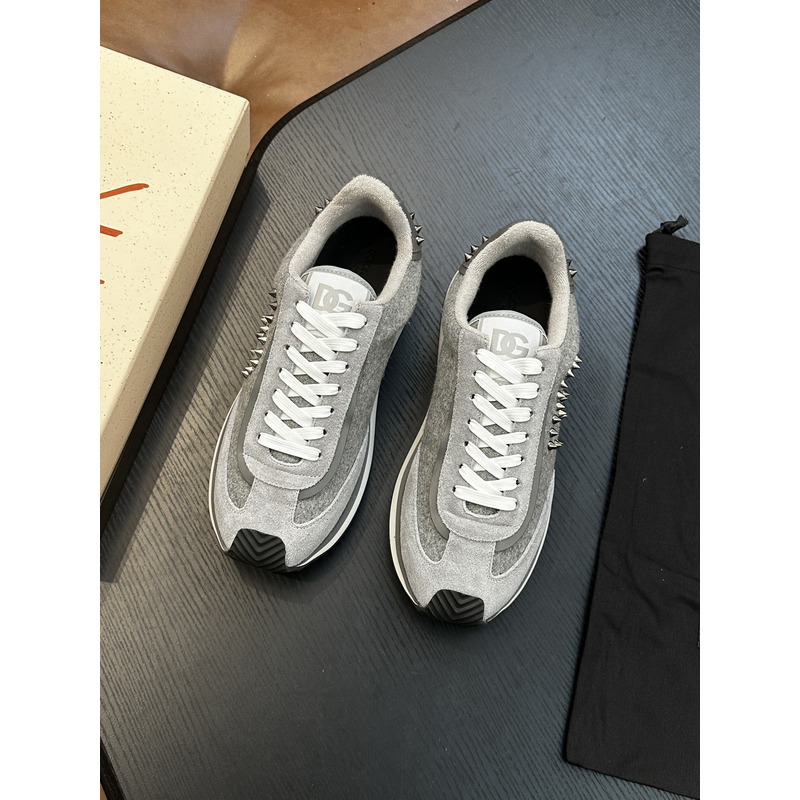 Dolce & Gabbana Running Sneakers In Grey Suede With Stud Embellishments