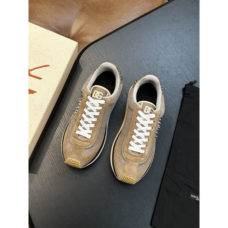 Dolce & Gabbana Running Sneakers In Brown Suede With Stud Embellishments