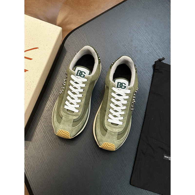 Dolce & Gabbana Running Sneakers In Green Suede With Stud Embellishments