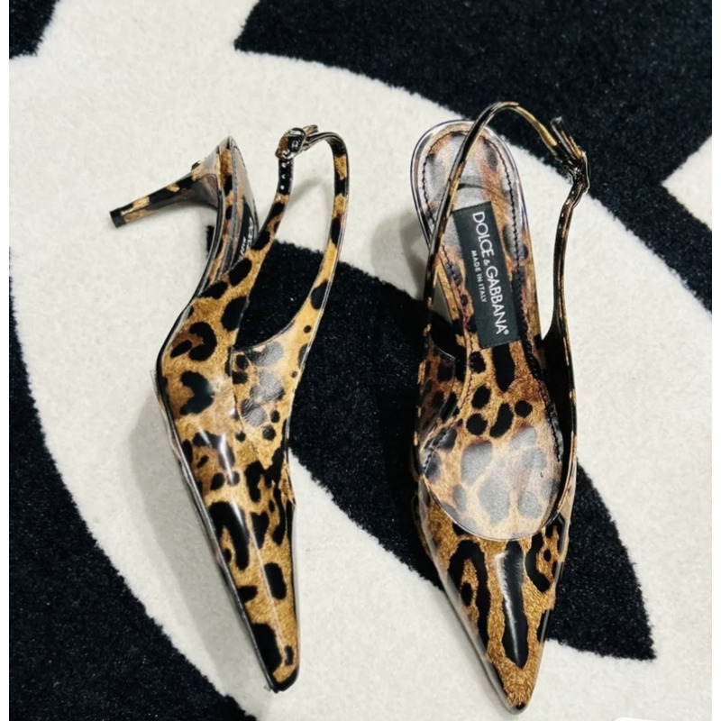 Dolce & Gabbana Printed Polished Calfskin Slingbacks