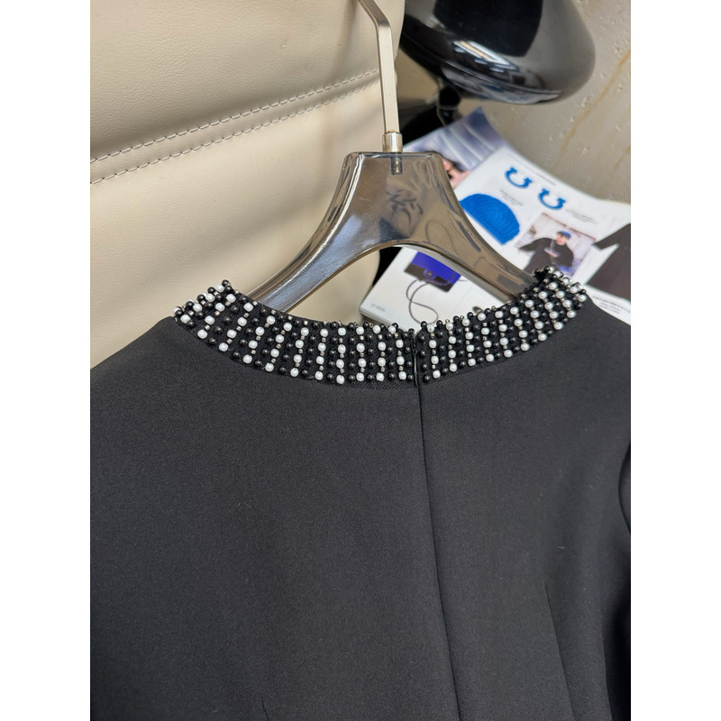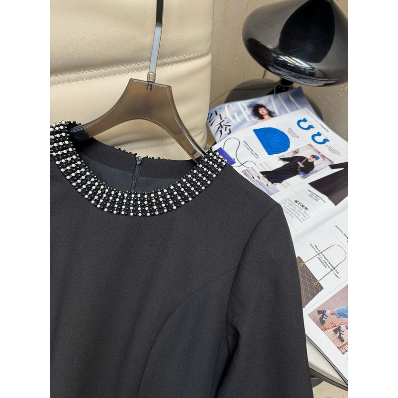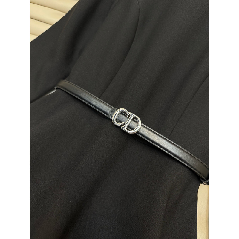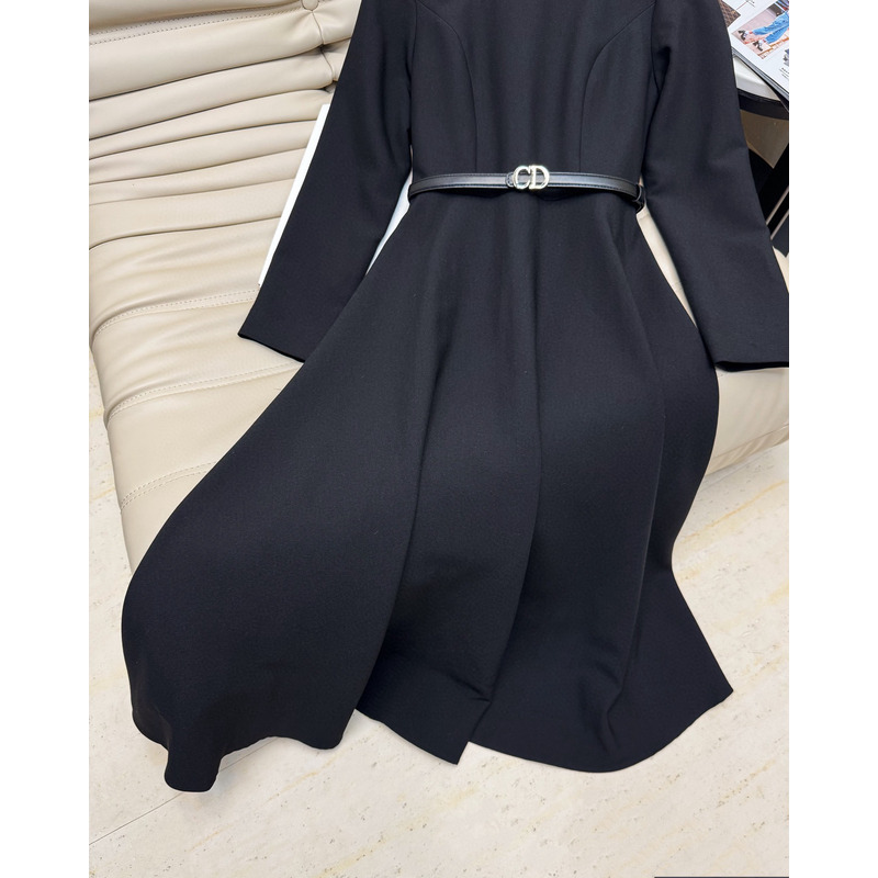 Dior Crew Neck Midi Dress with Pearl Embellished Collar and CD Buckle Belt in Black