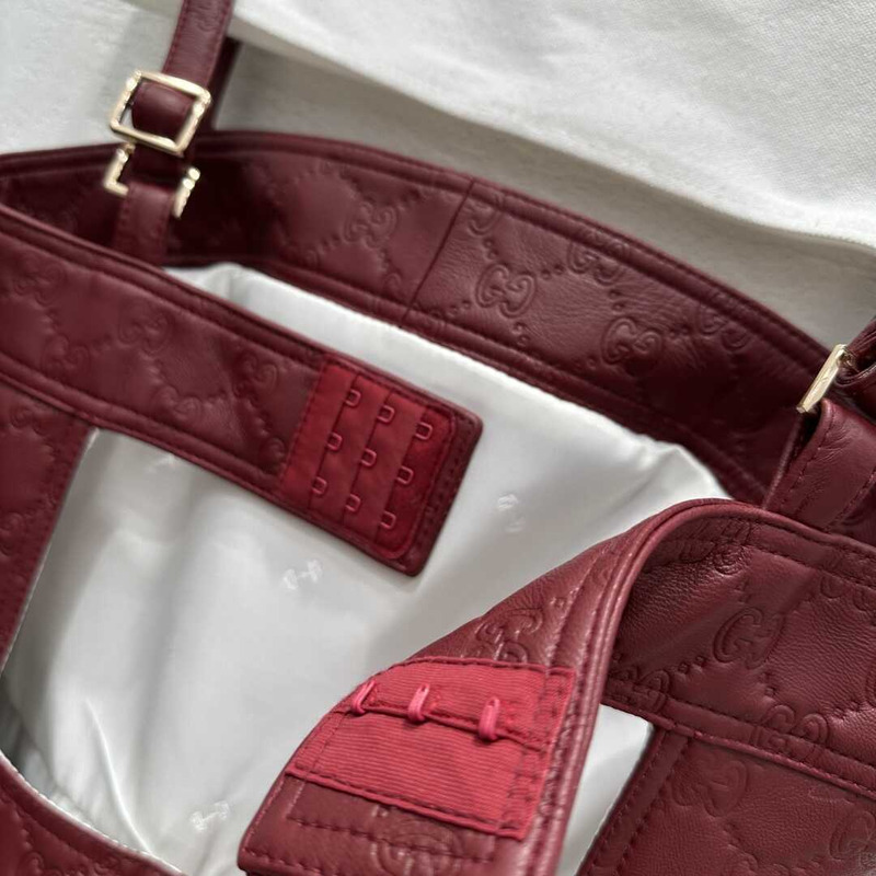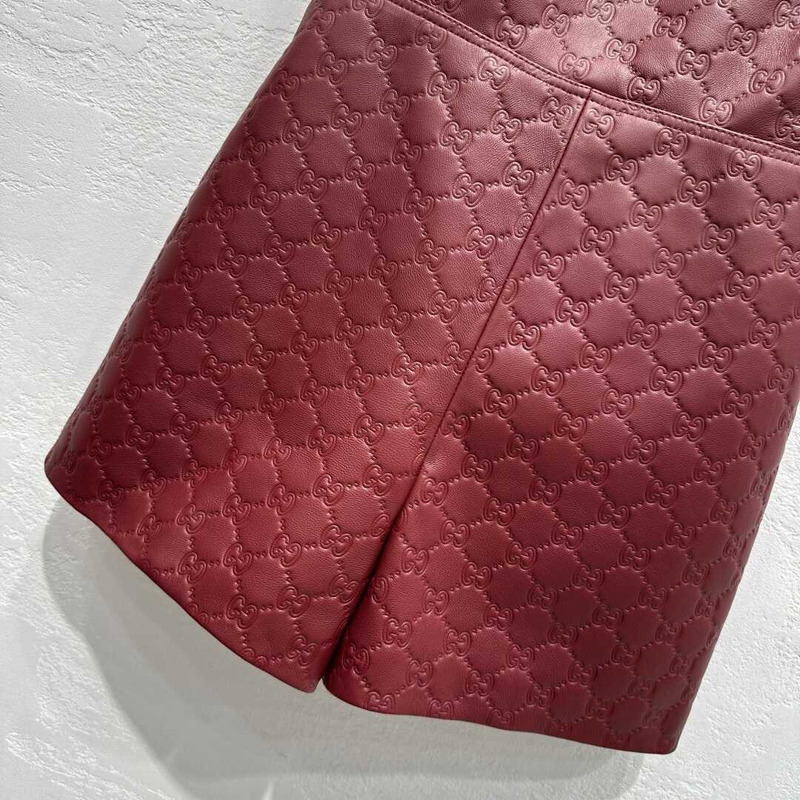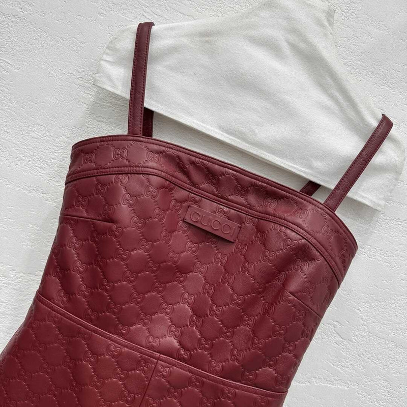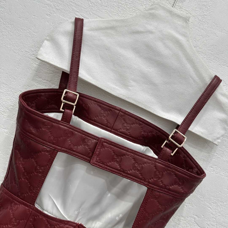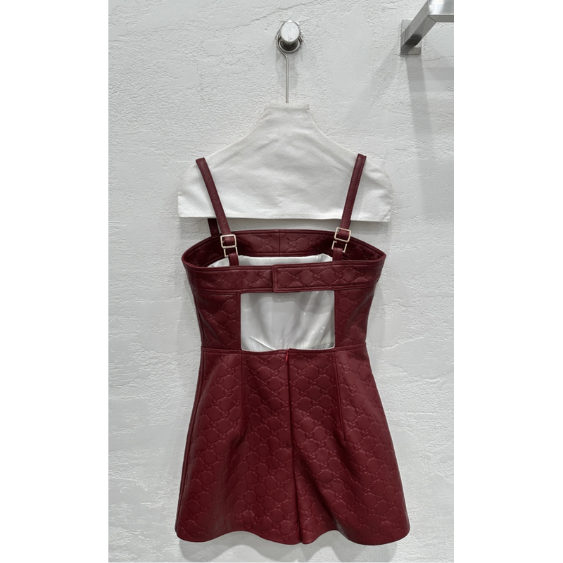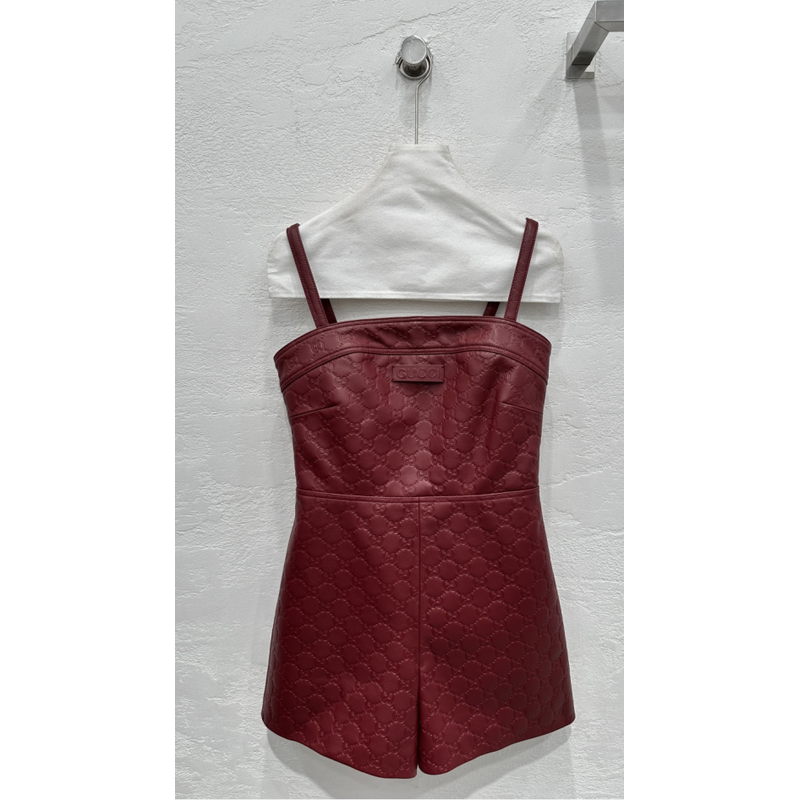 Gucci GG Monogram Burgundy Leather Strappy Romper