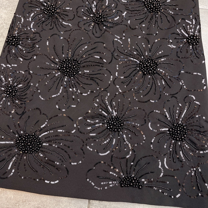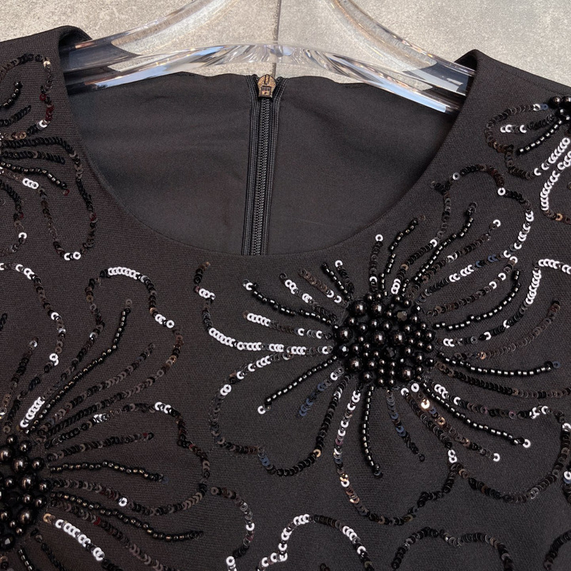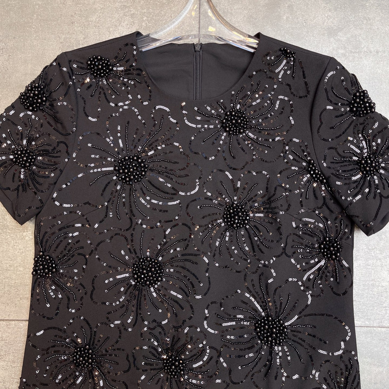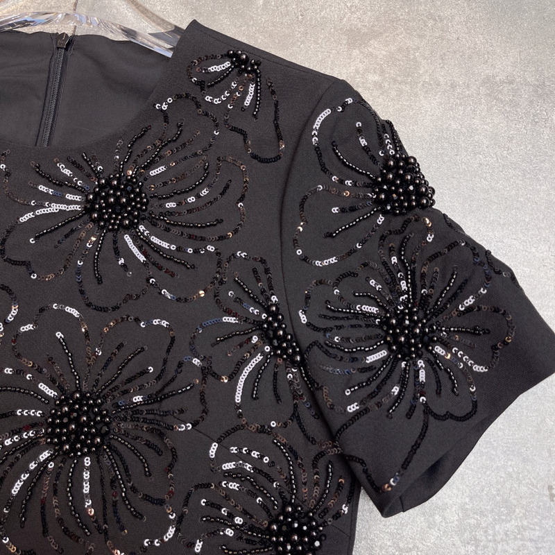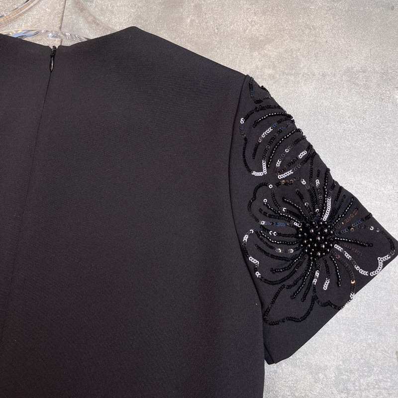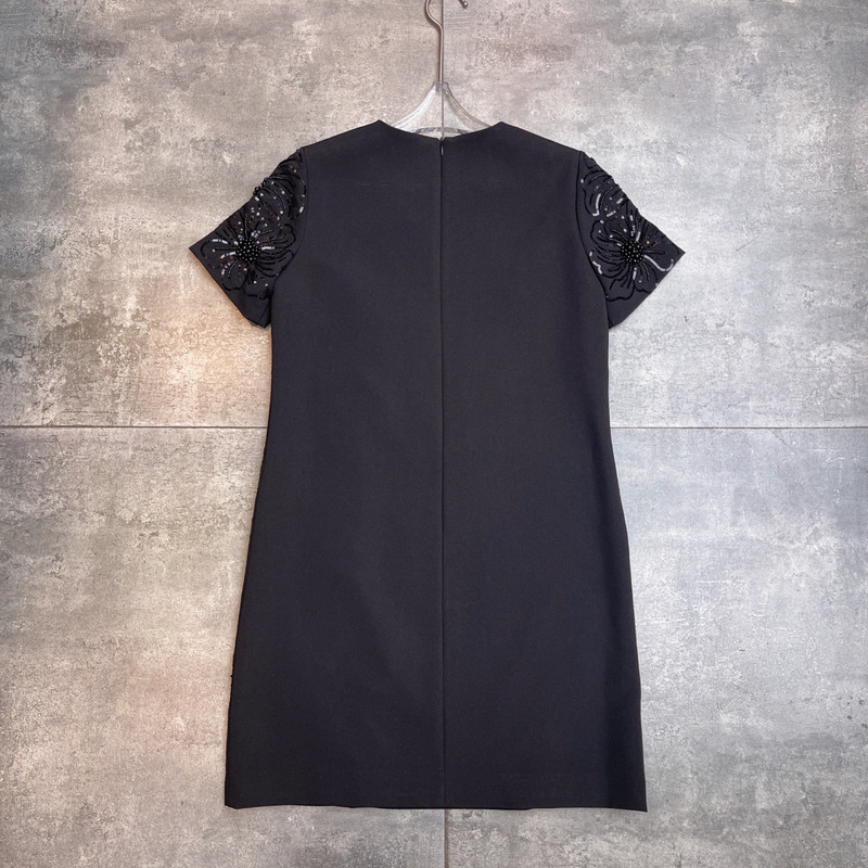 Valentino Black Short - Sleeve Dress With Sequin Embroidery