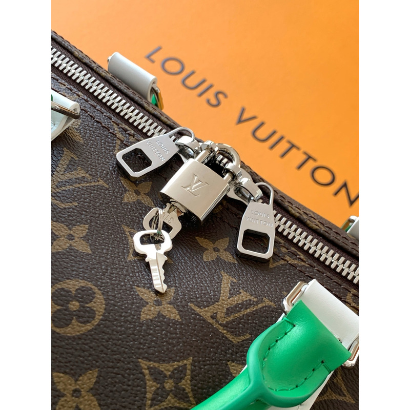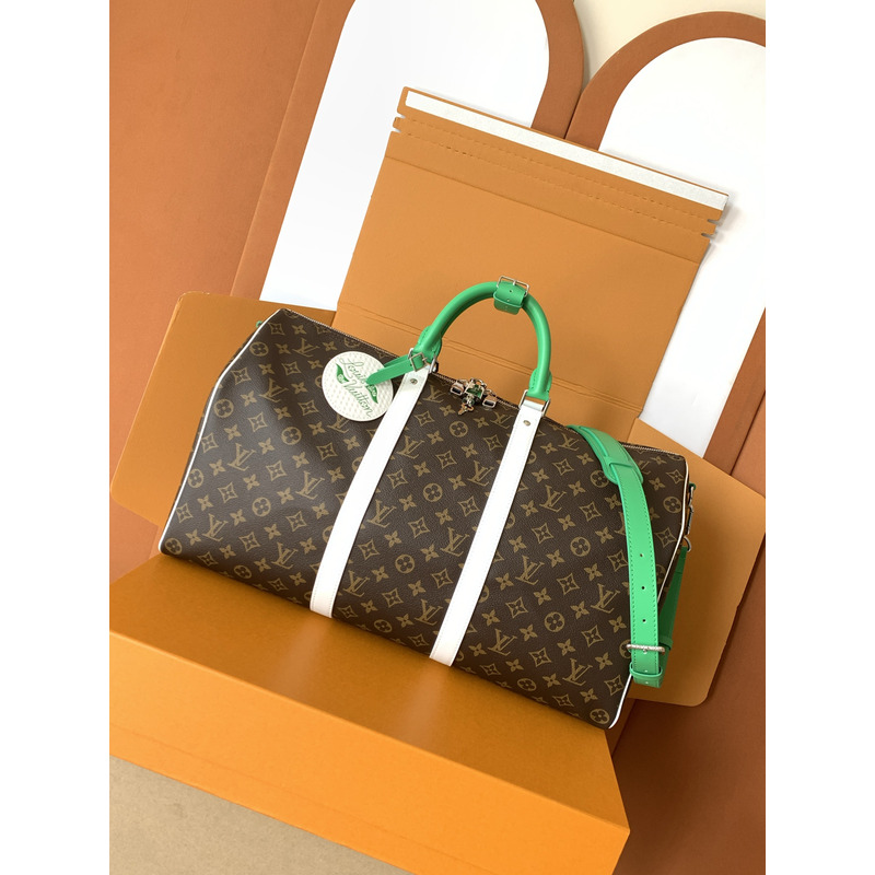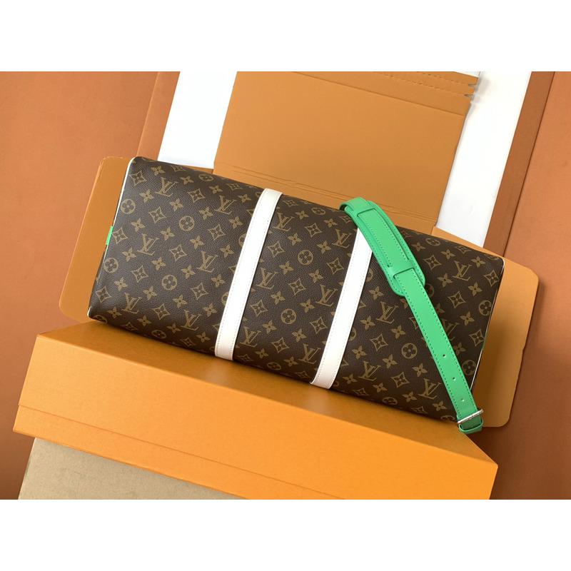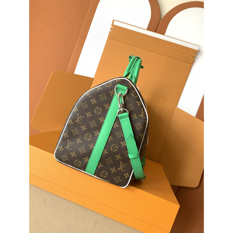 Louis Vuitton Keepall Bandoulière 45 In Green And White