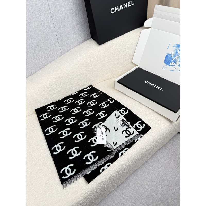 Chanel Cashmere Scarf Multicolor CC Logo White
