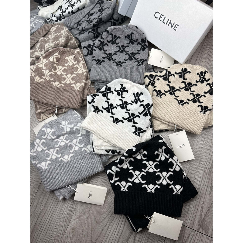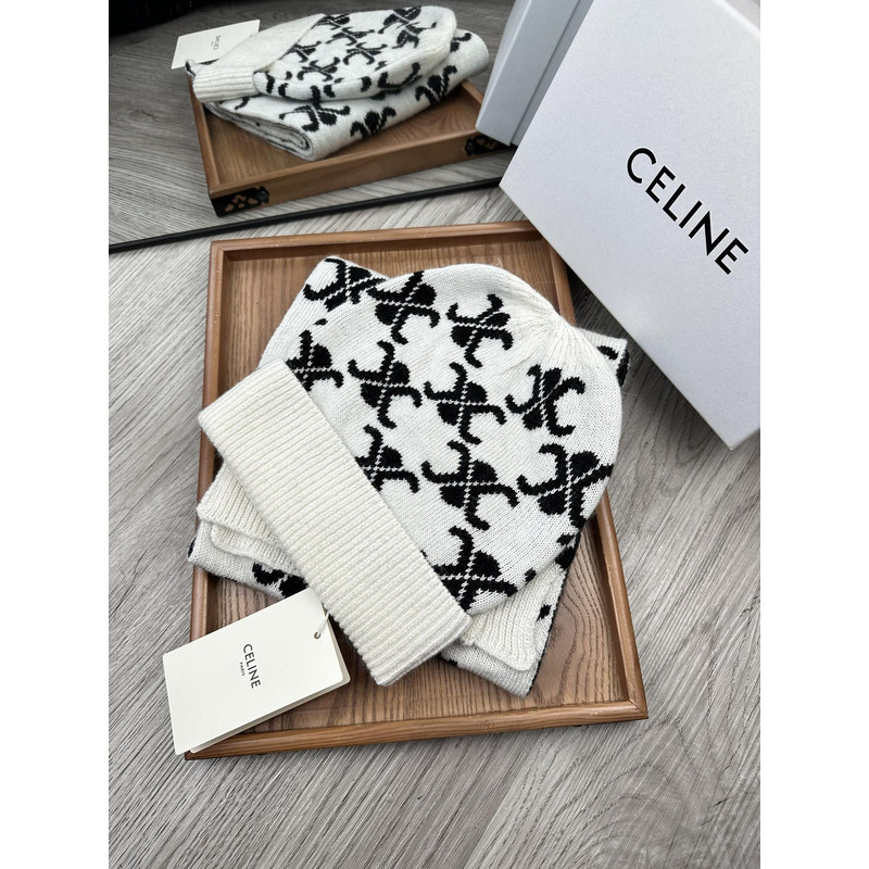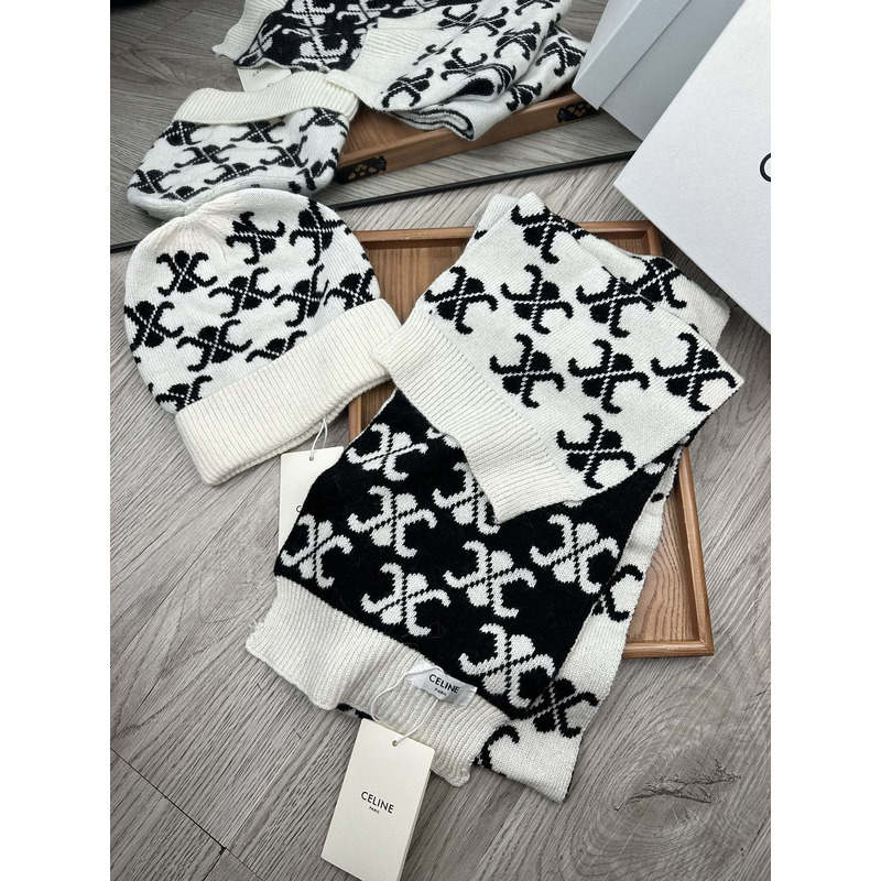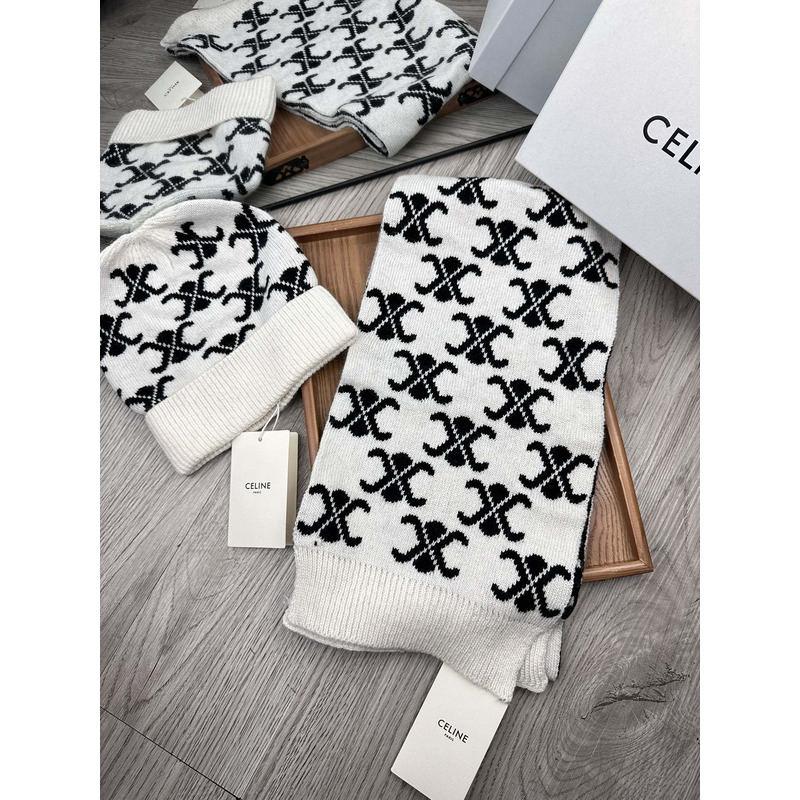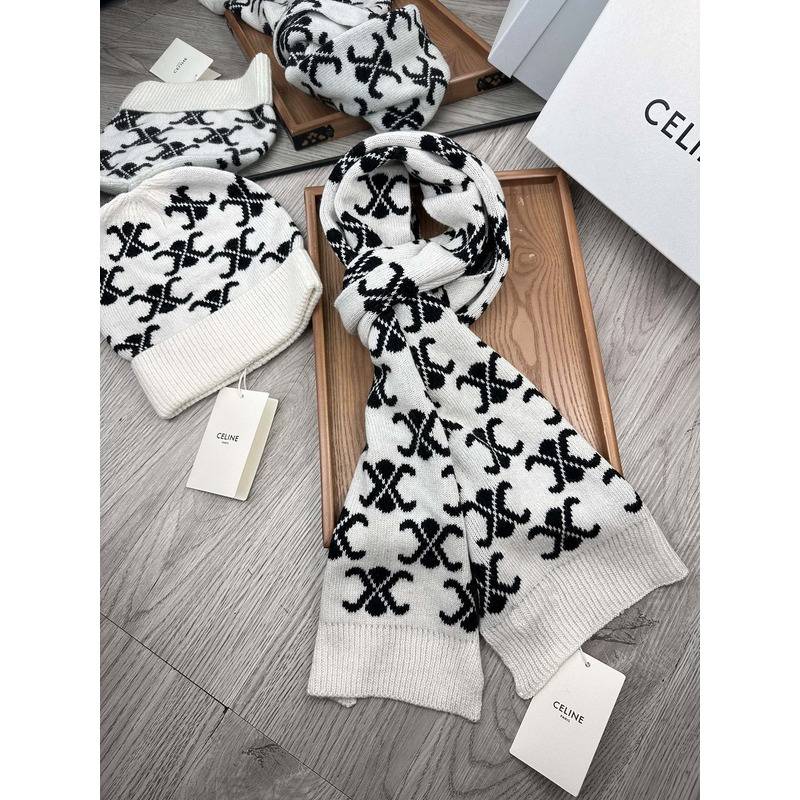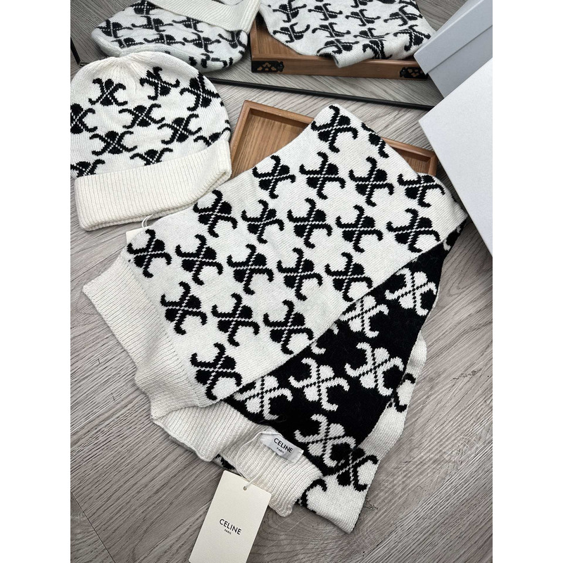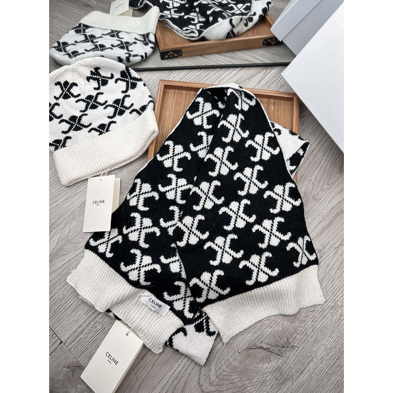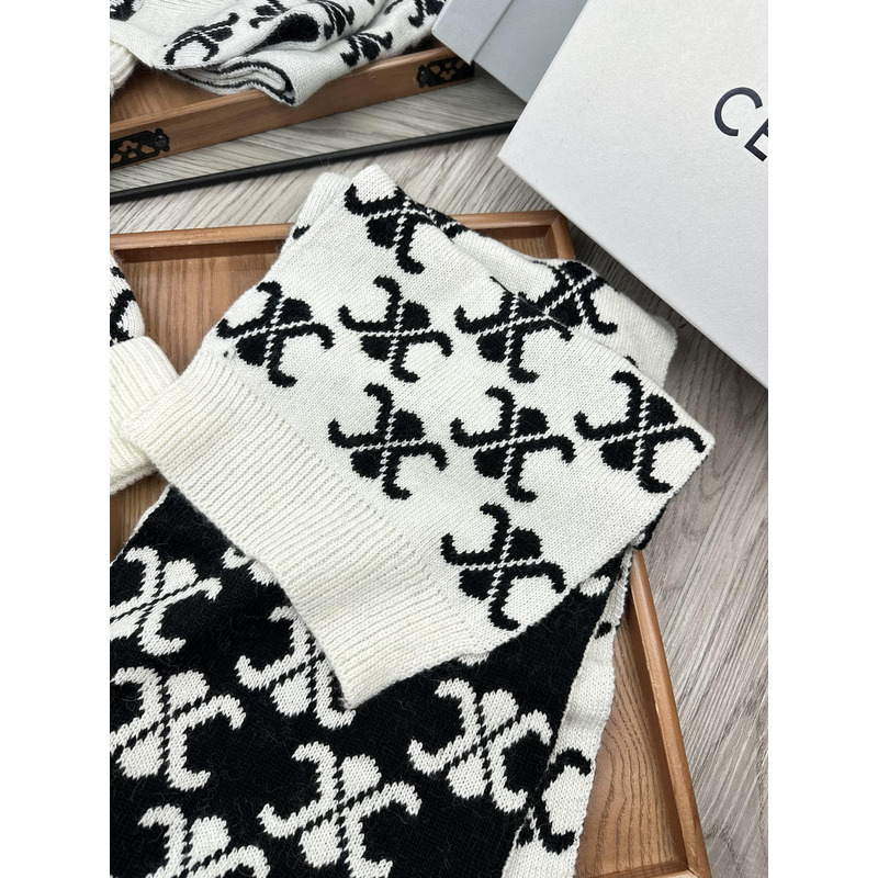 Celine Triomphe Monogram Knitted Scarf In Black And White