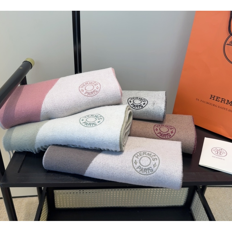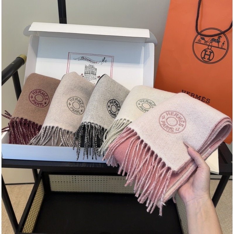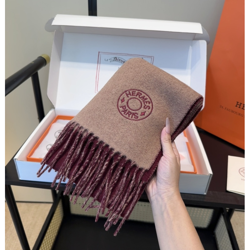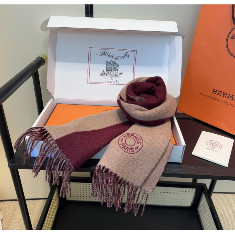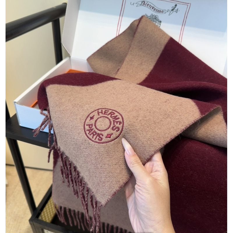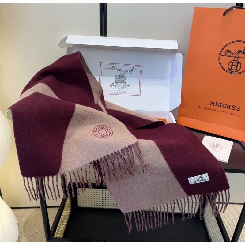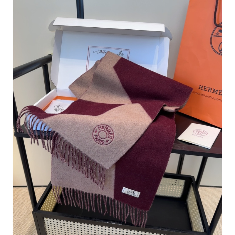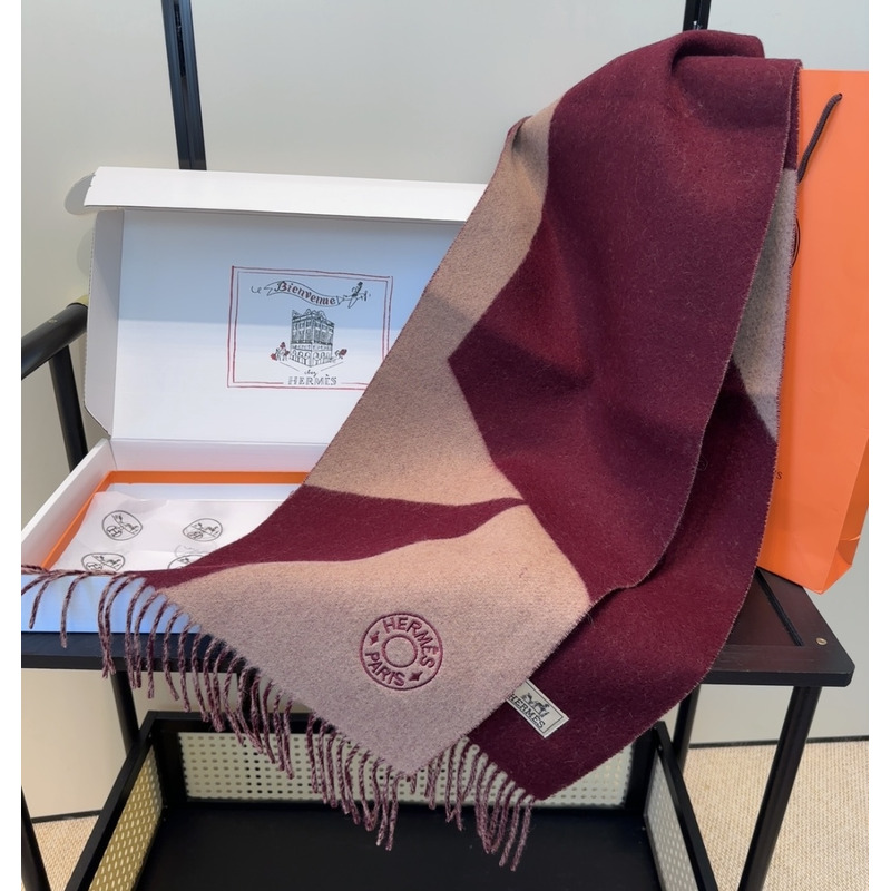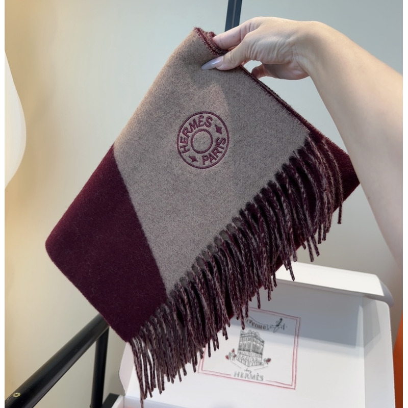 Hermes Cashmere Scarf Wine Red / Light Brown