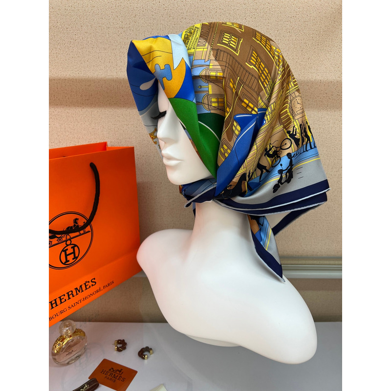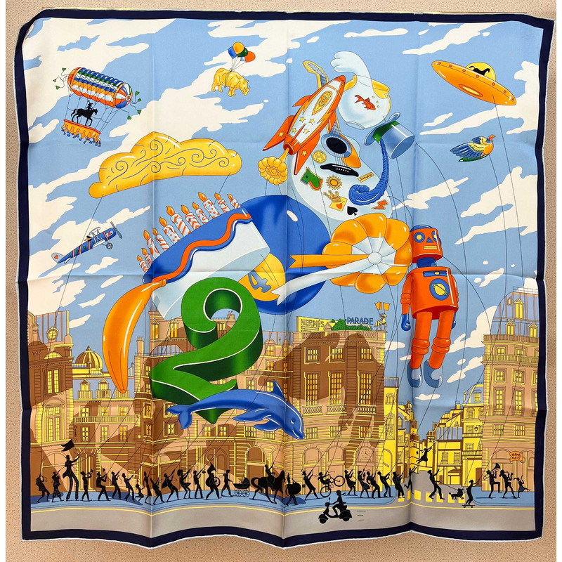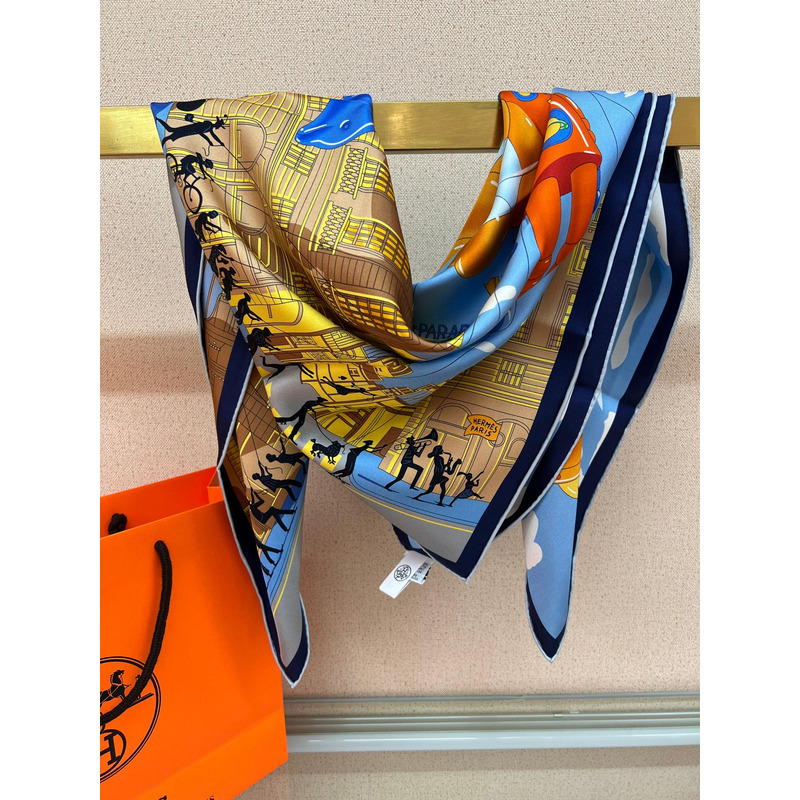 Hermes Hermès Parade Scarf 90 Blue / Yellow / Multicolore