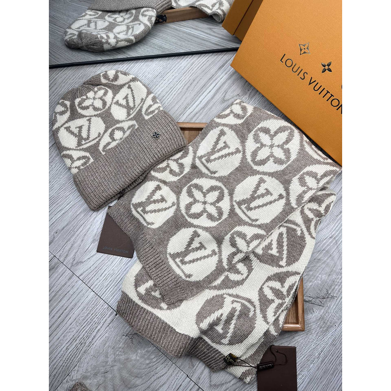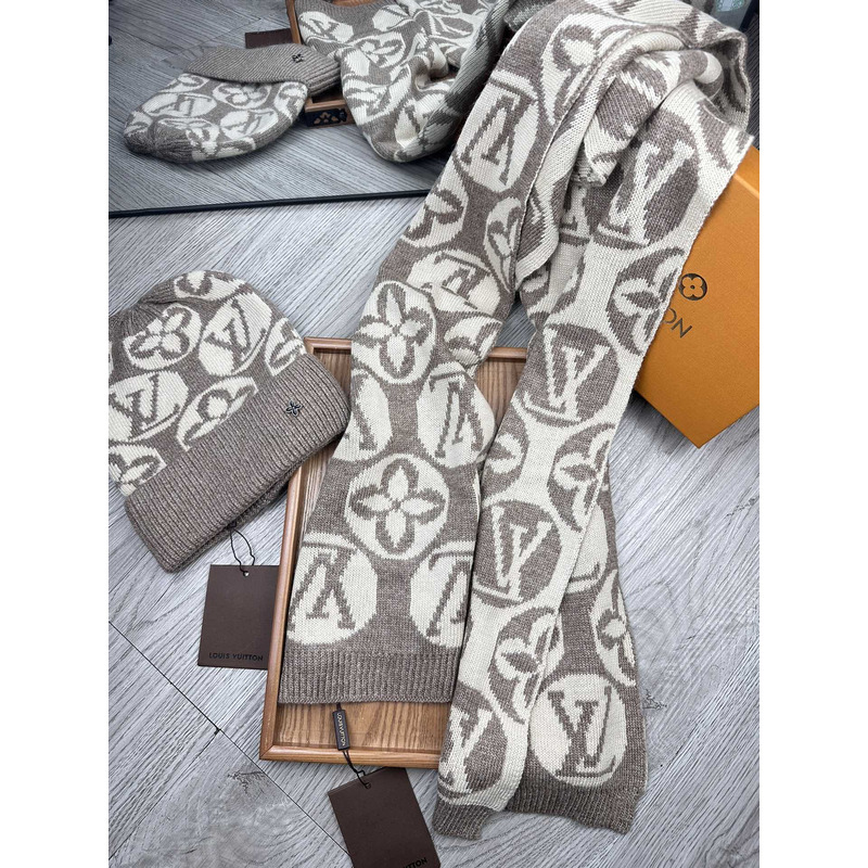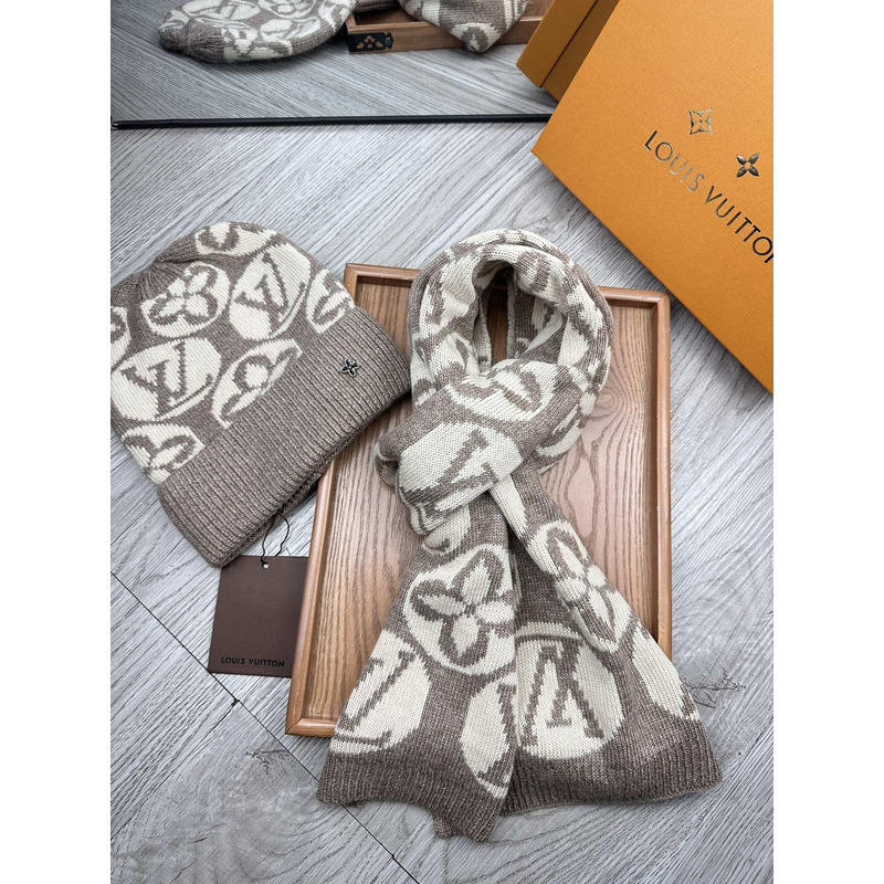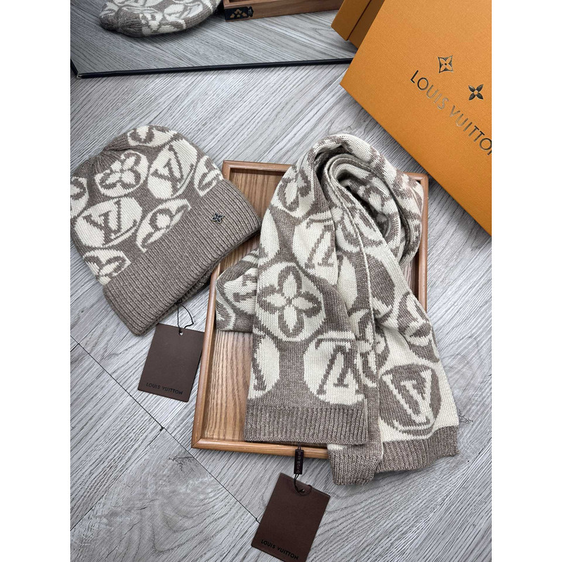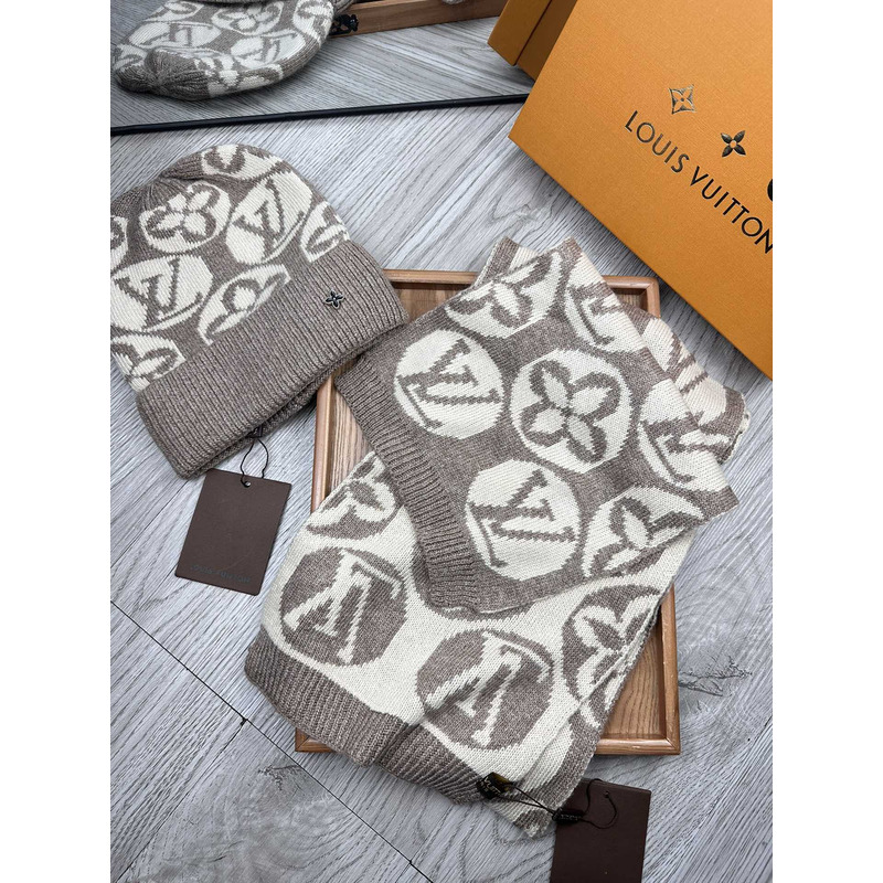 Louis Vuitton Monogram Wool Beanie In Light Brown & White