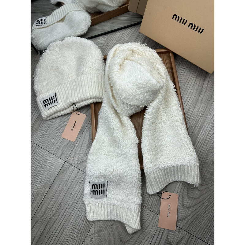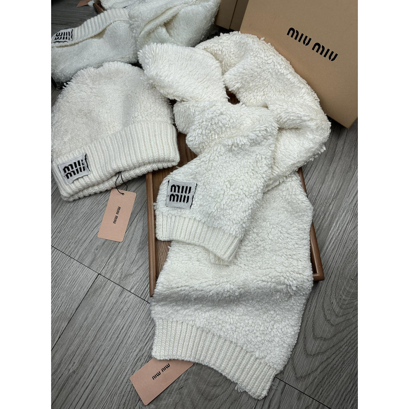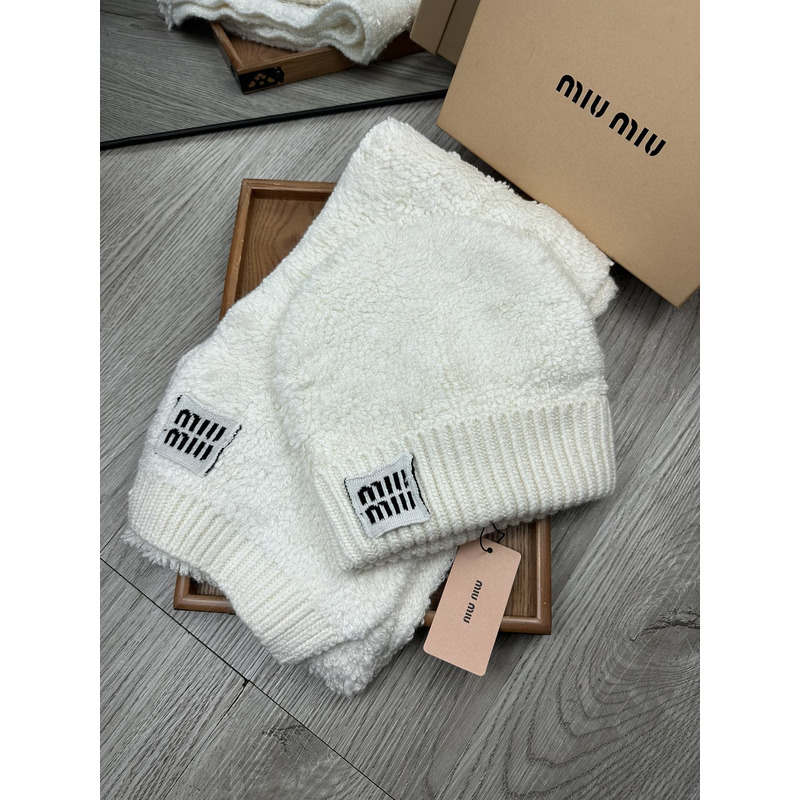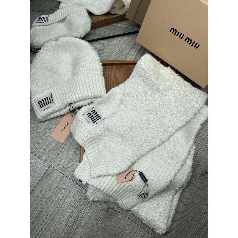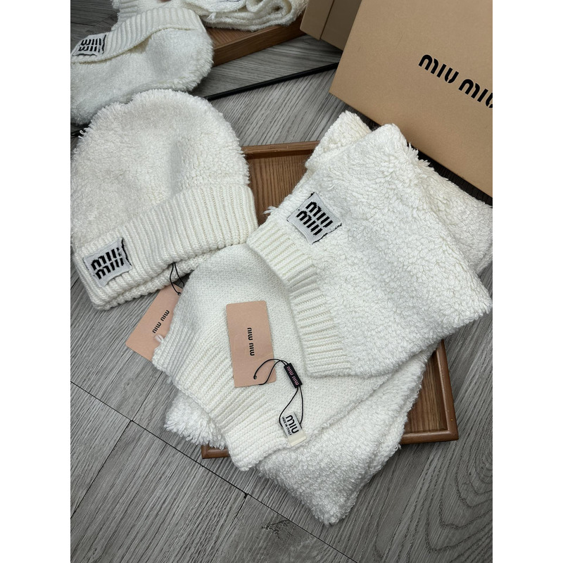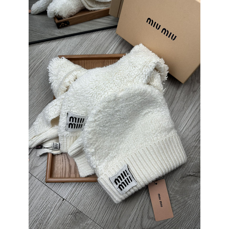 Miu Miu Terry Knit Beanie & Scarf Set In White