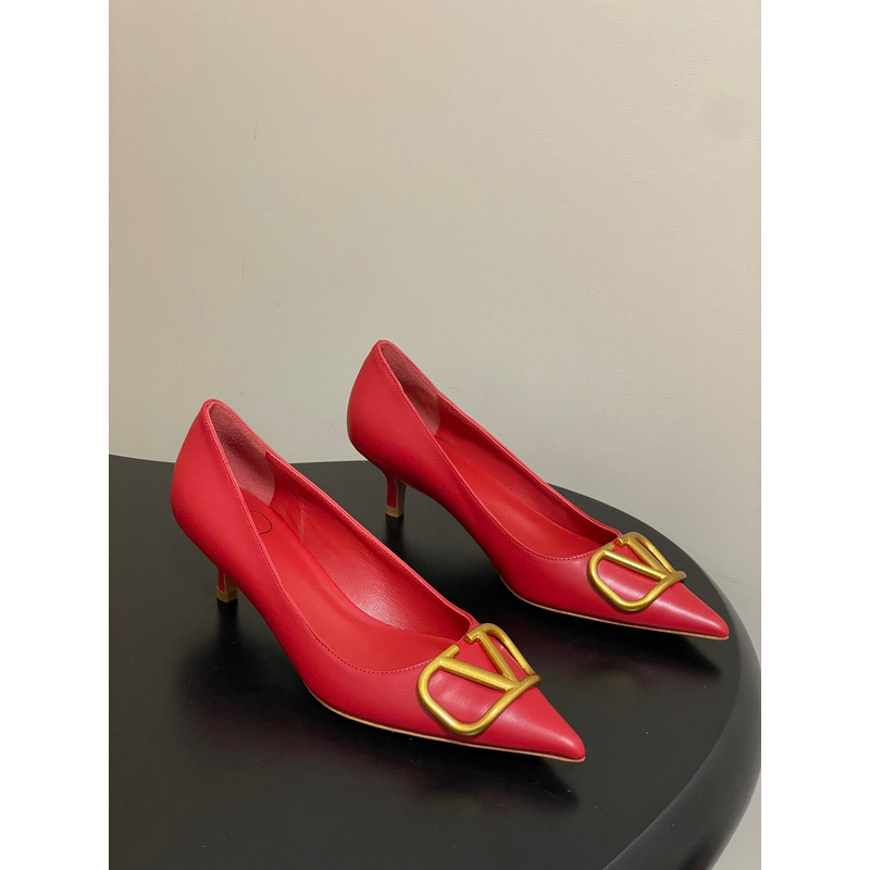 Valentino Garavani VLogo Leather Pointed-Toe Pumps In Red