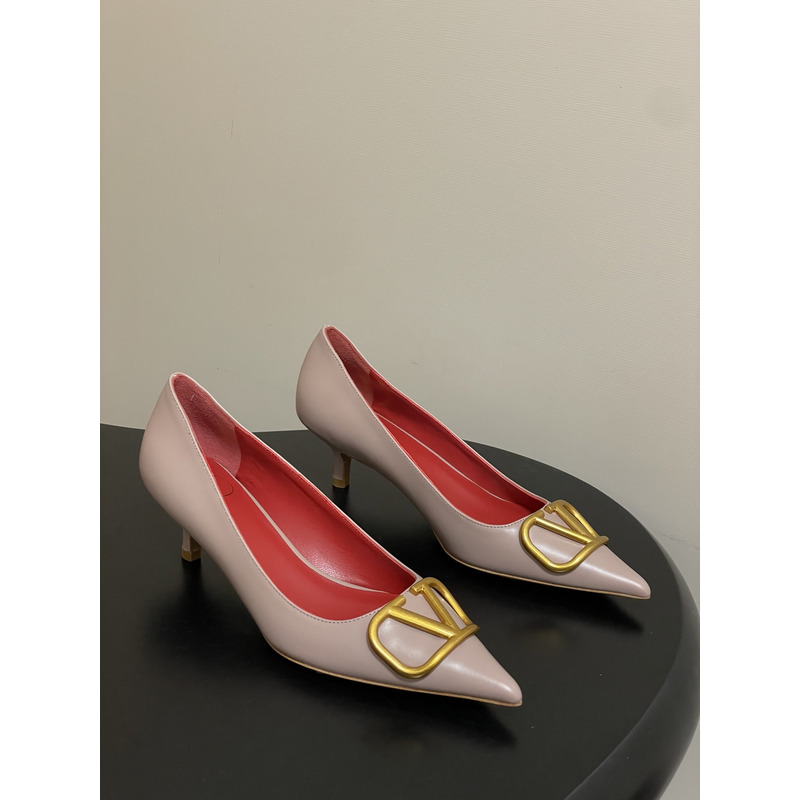 Valentino Garavani VLogo Leather Pointed-Toe Pumps In Light Pink/Red