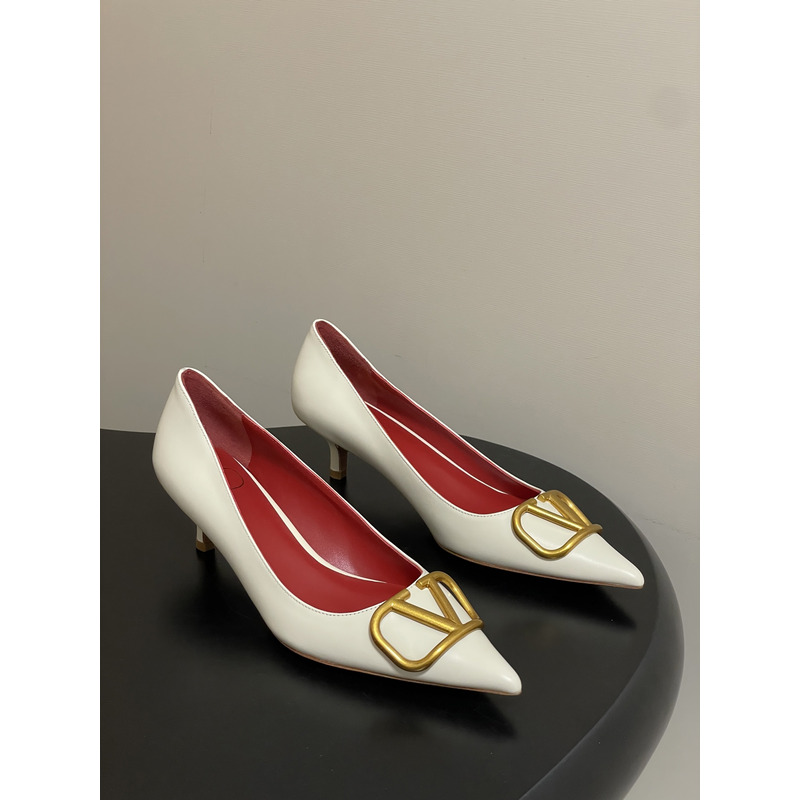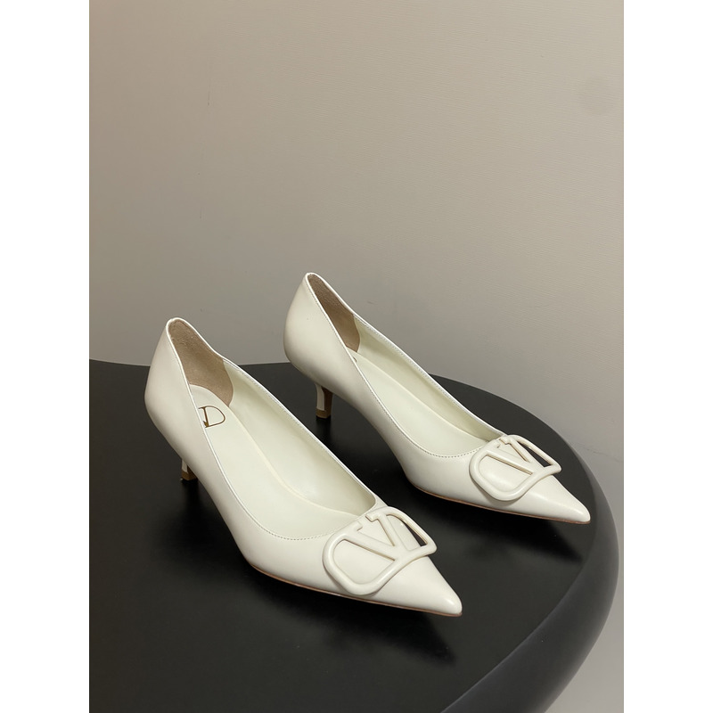 Valentino Garavani VLogo Leather Pointed-Toe Pumps In Off-White