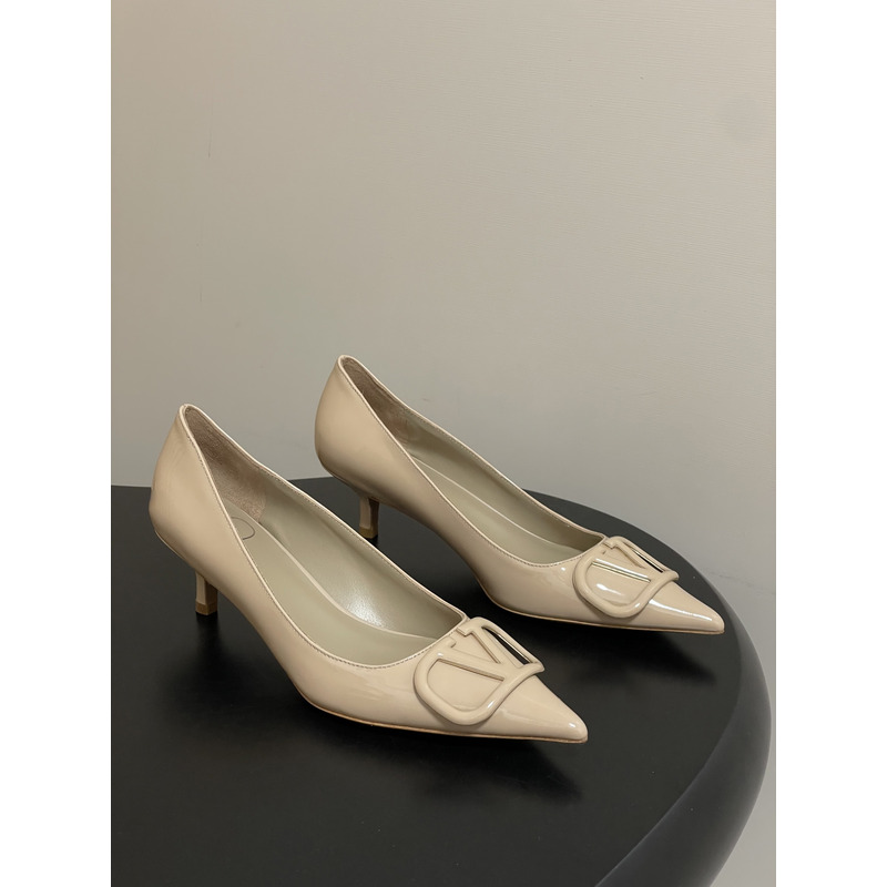 Valentino Garavani VLogo Patent Leather Pointed-Toe Pumps In Black/Beige