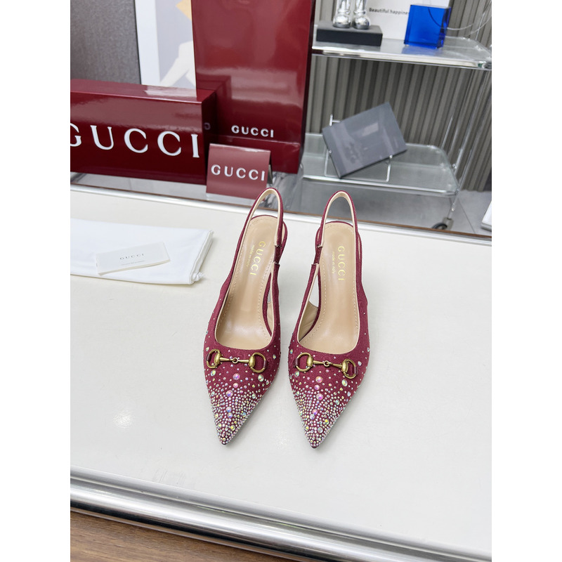 Gucci Slingback Pump With Crystal Horsebit Variation Rosso Ancora GG canvas