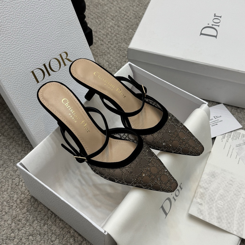 Dior Capture Heeled Black Mule Transparent Mesh With Silver-Tone Strass Cannage Motif