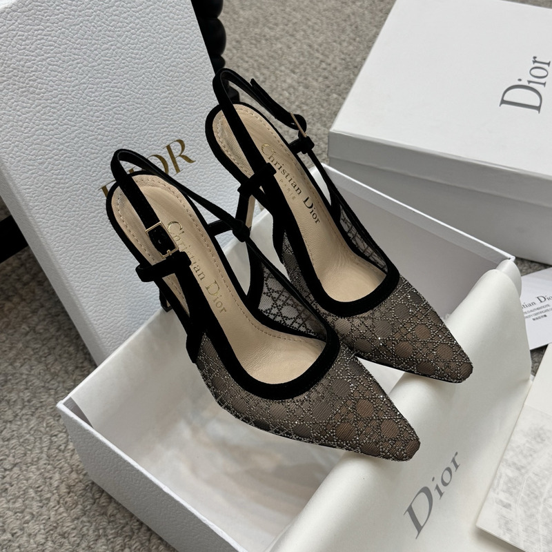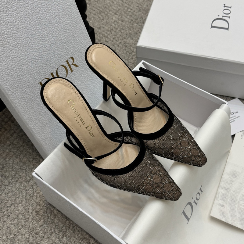 Dior Capture Slingback Black Pump Transparent Mesh With Silver-Tone Strass Cannage Motif