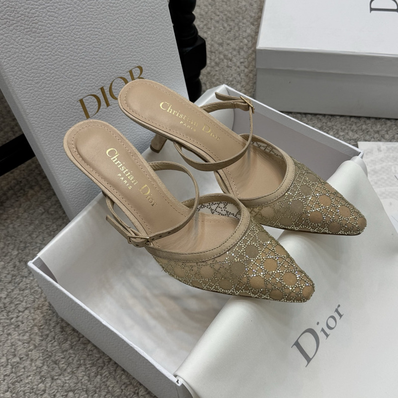 Dior Capture Heeled Mule Beige With Strass Cannage Motif