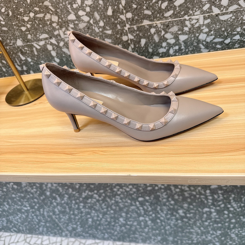 Valentino Rockstud Dusty Taupe Textured Leather Studded Heels