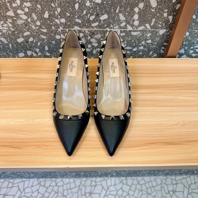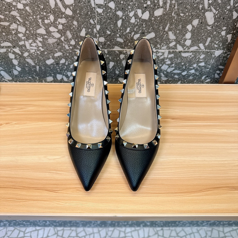 Valentino Rockstud Black Textured Leather Studded Heels