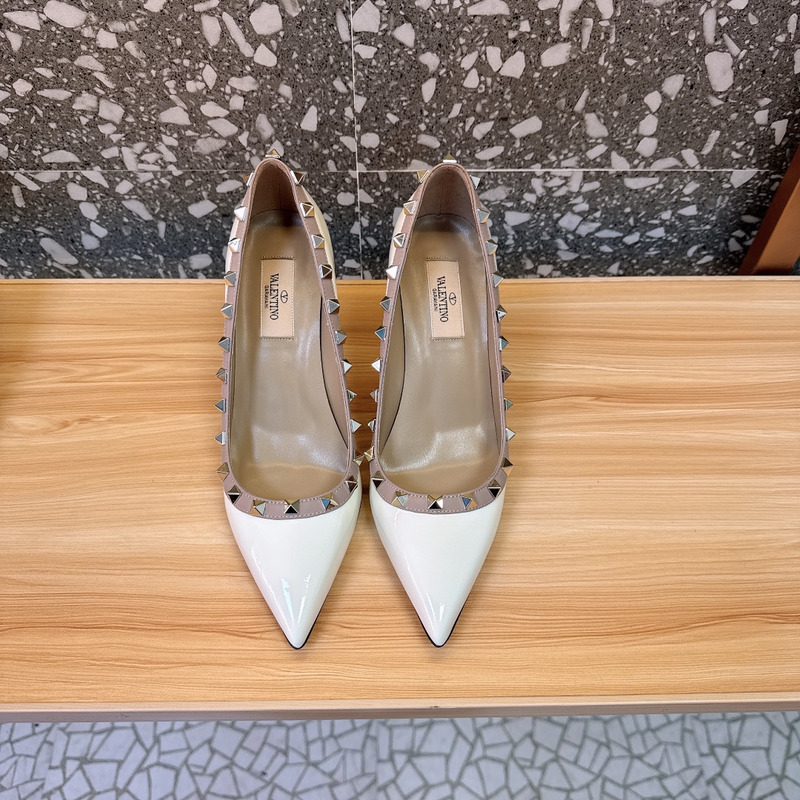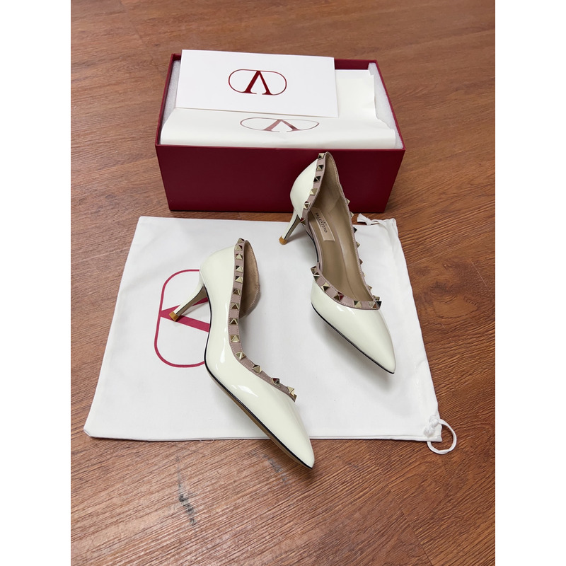 Valentino Rockstud Patent Leather Studded Heels - White