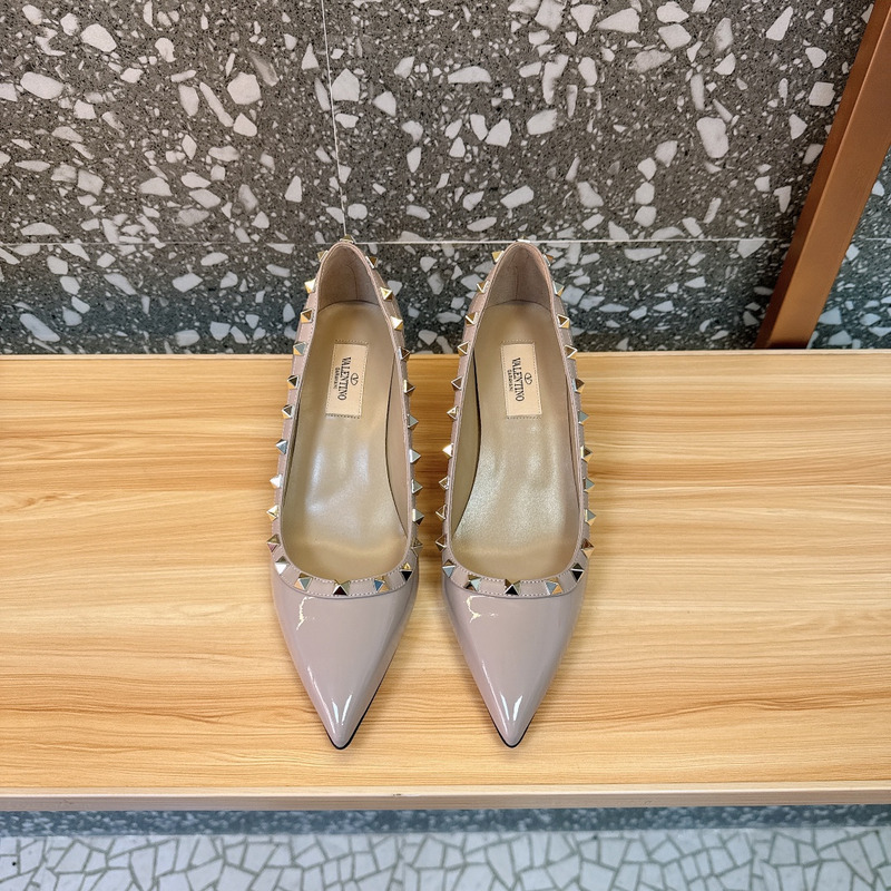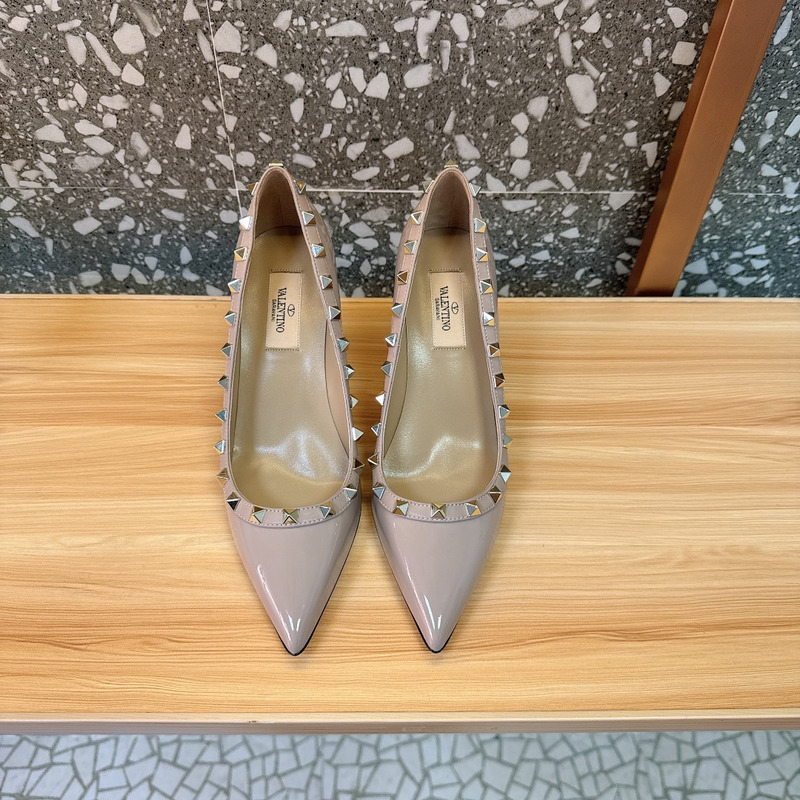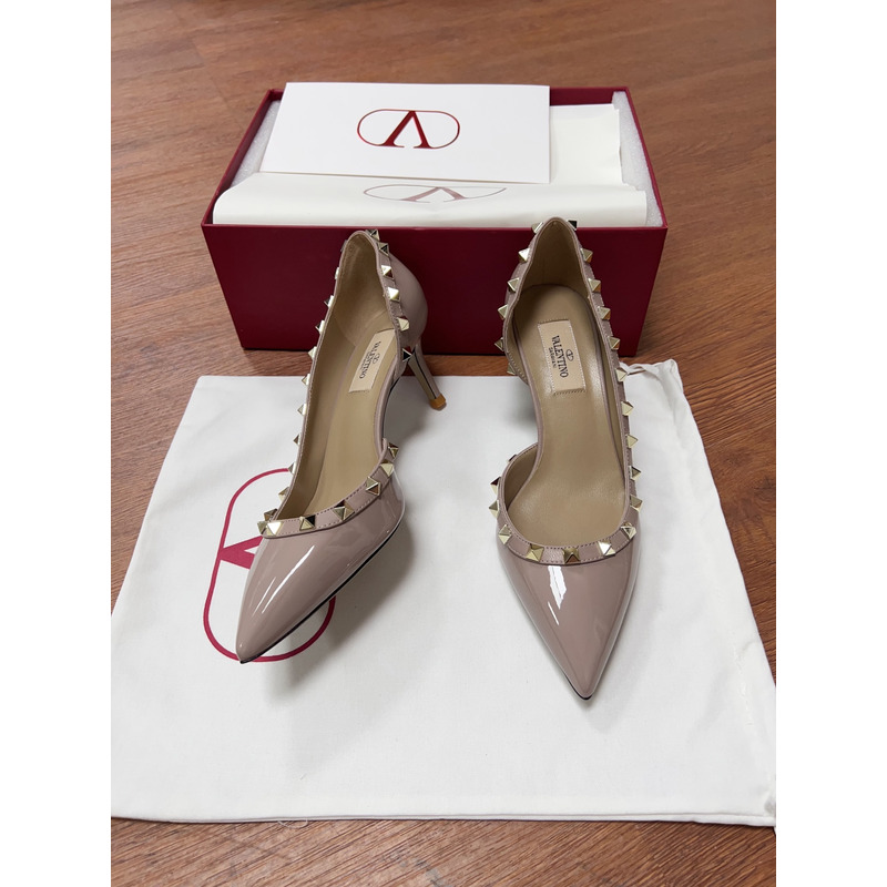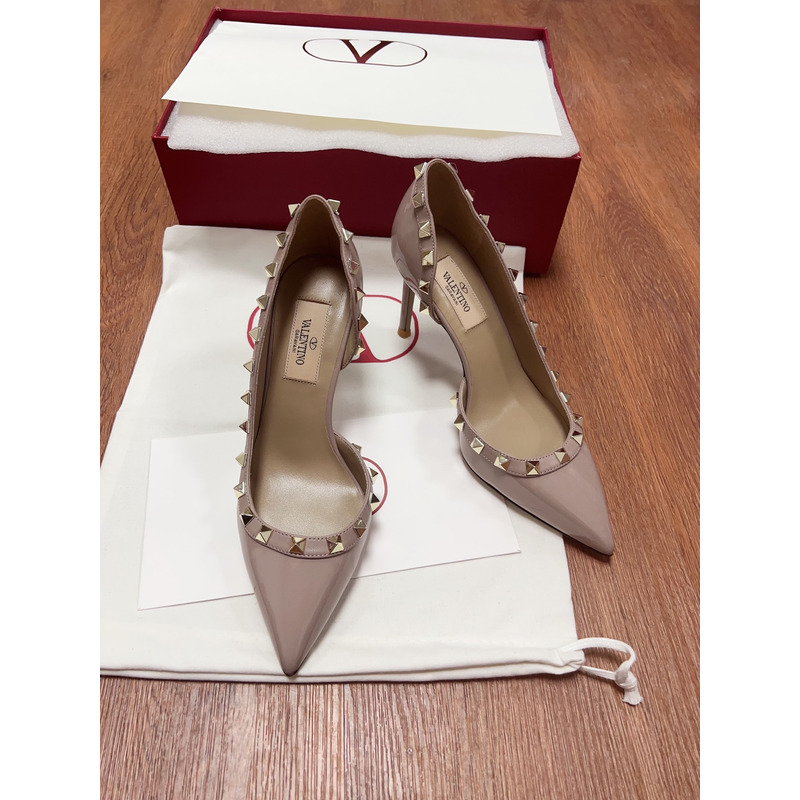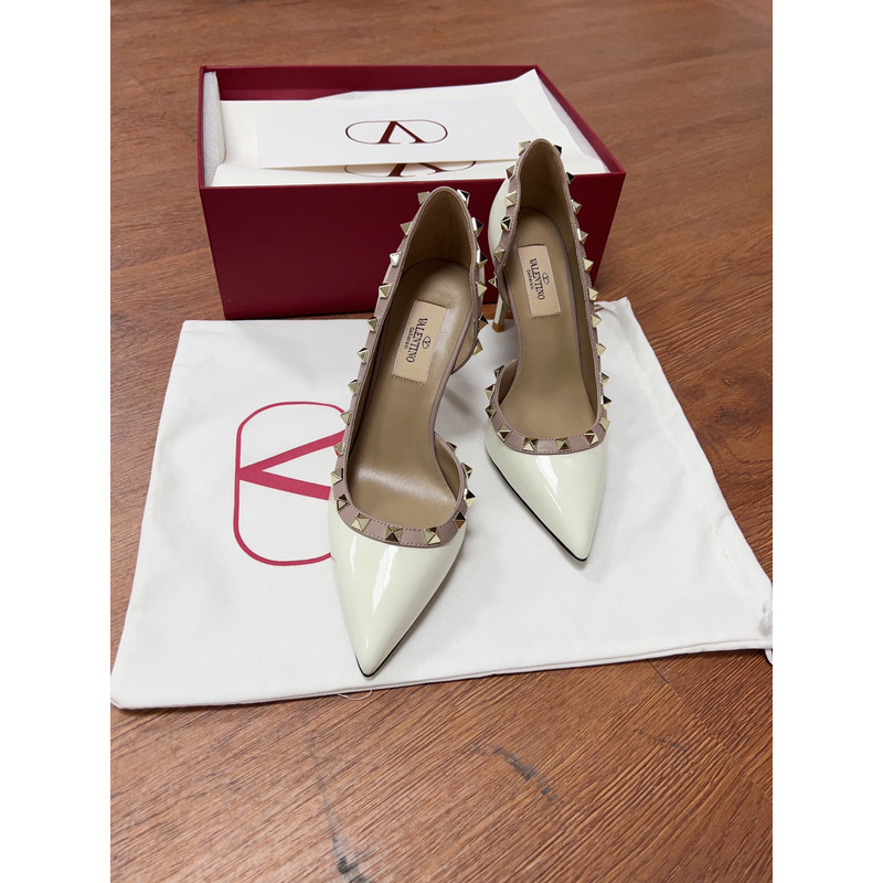 Valentino Cream Patent Leather Rockstud Pointed Toe Pumps