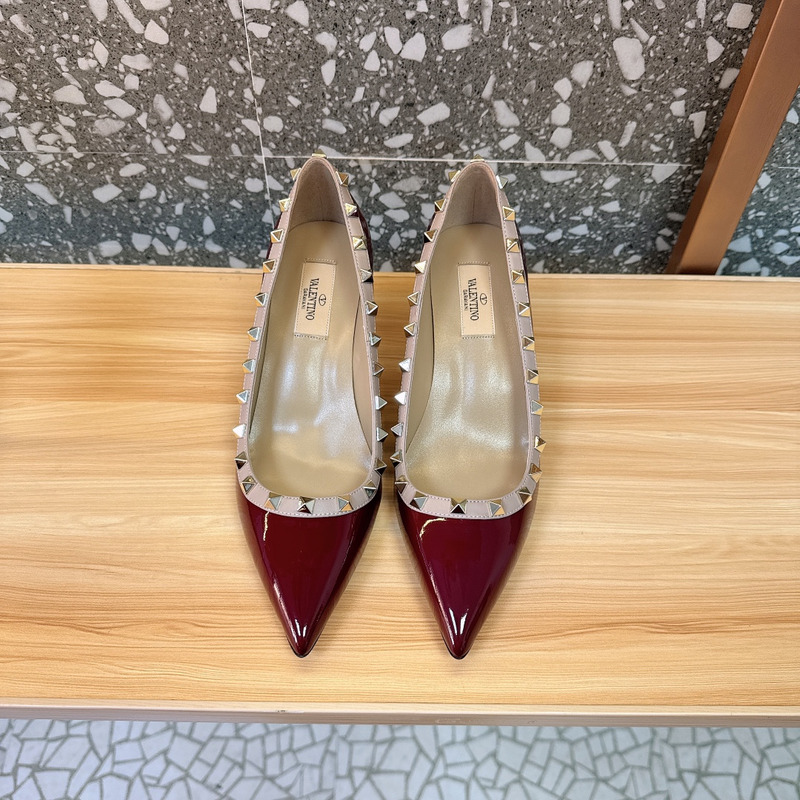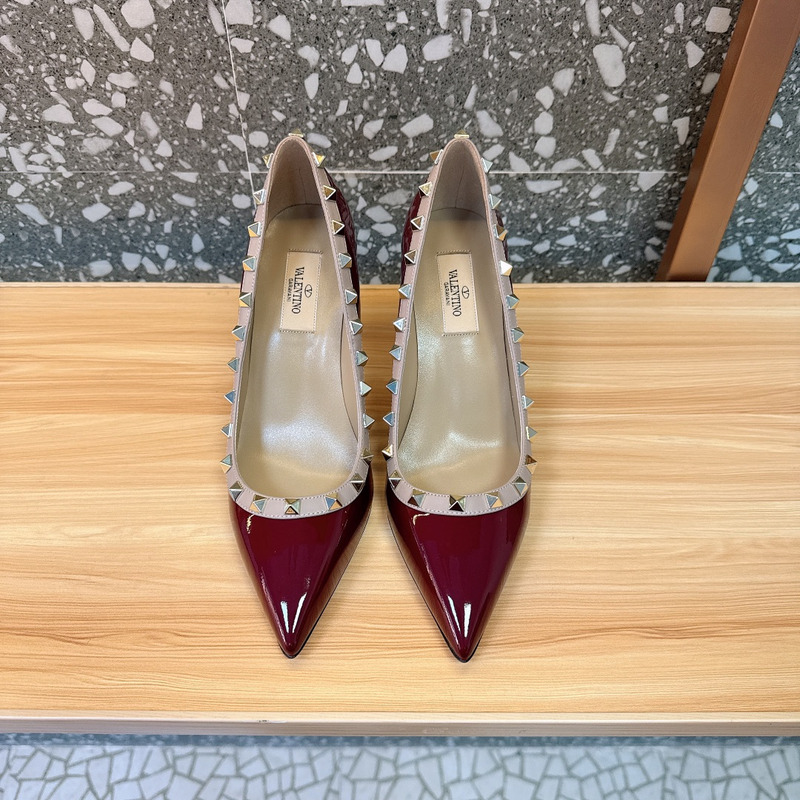 Valentino Rockstud Patent Leather Studded Heels In Red