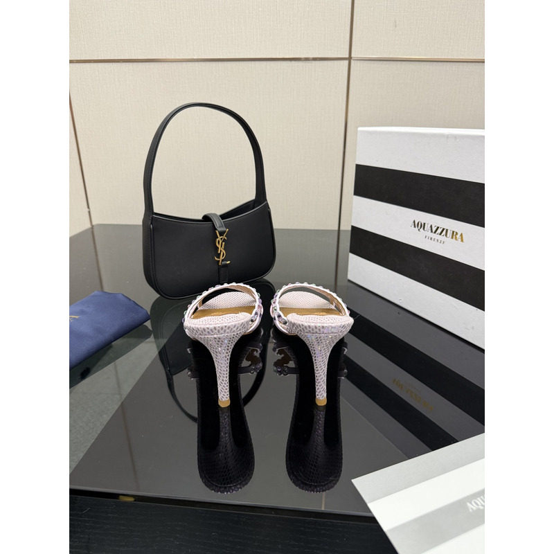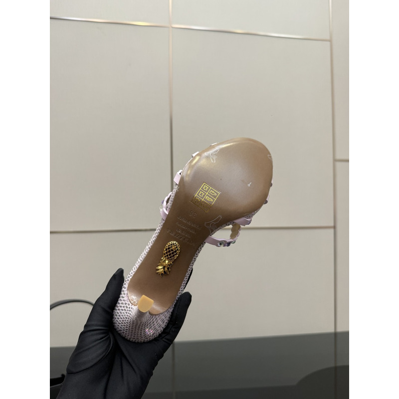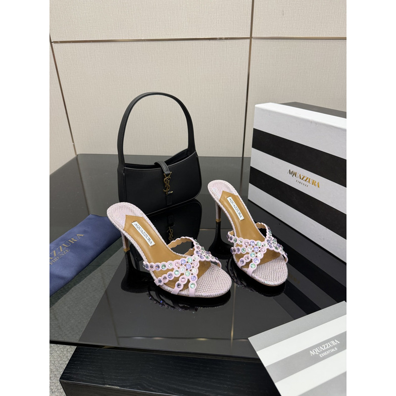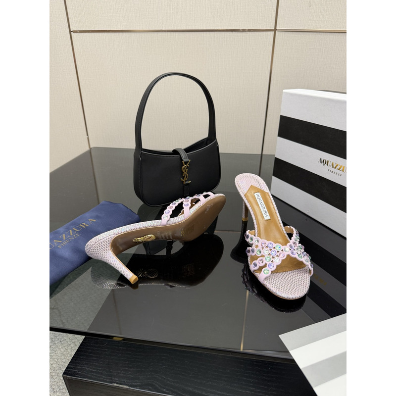 Aquazzura Crystal-Embellished Gunmeta Pastel Pink Laminated Mules