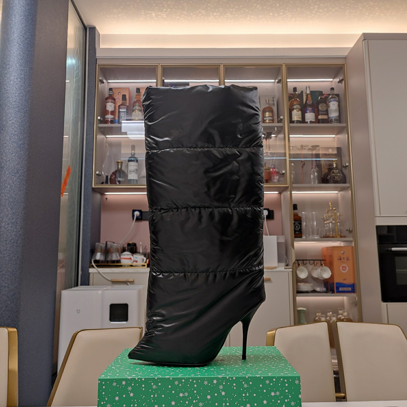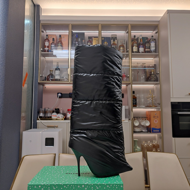 Balenciaga Black Inflatable Down High-Heeled Boots