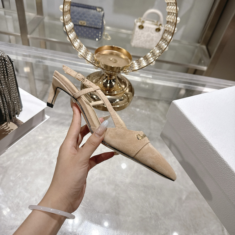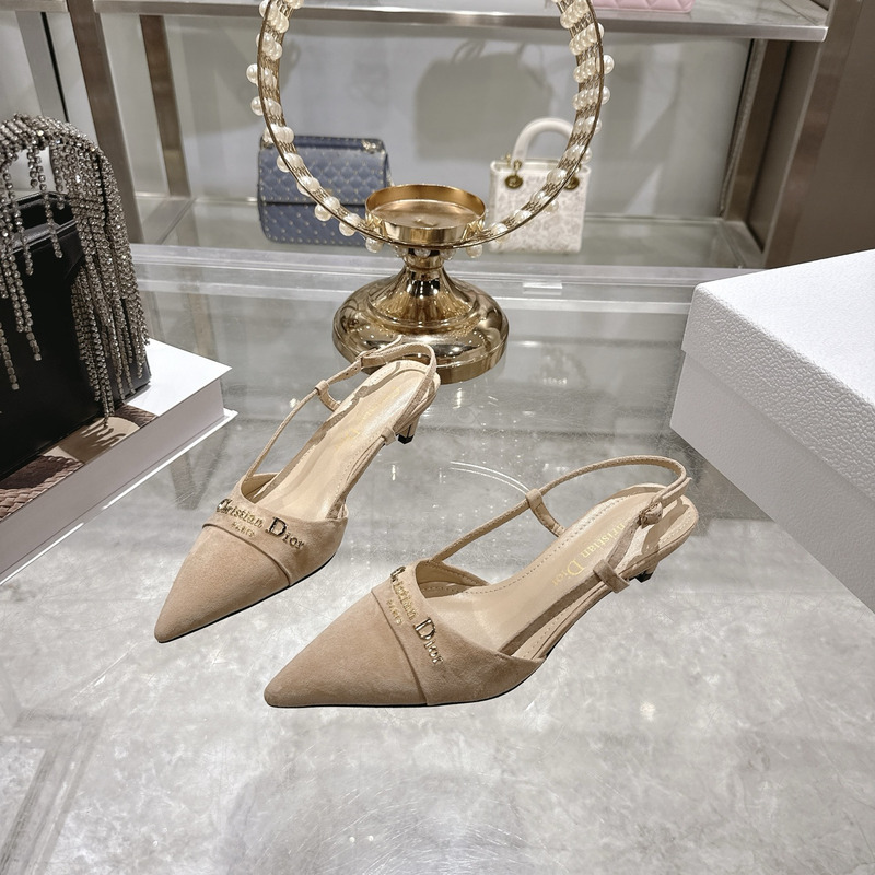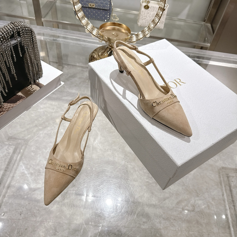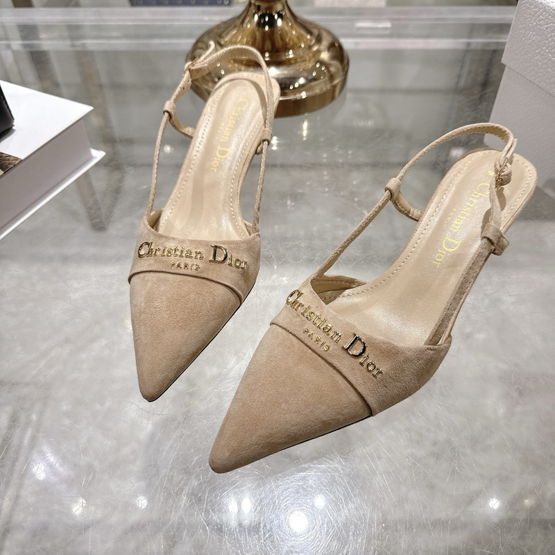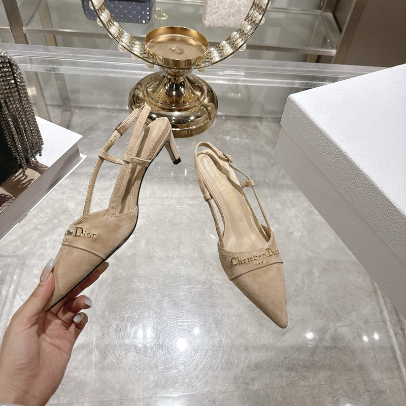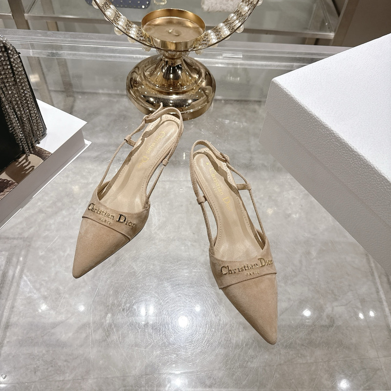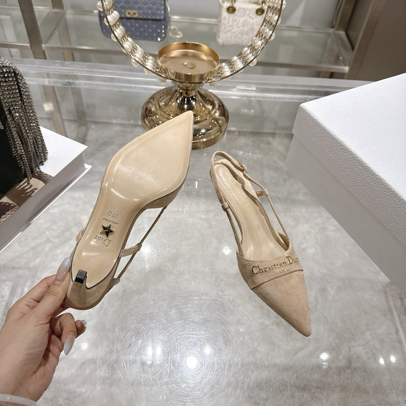 Dior Beige Suede Slingback Pumps With Logo Detail