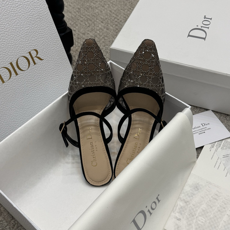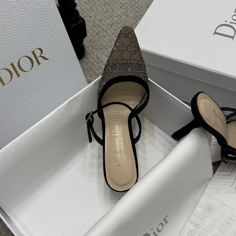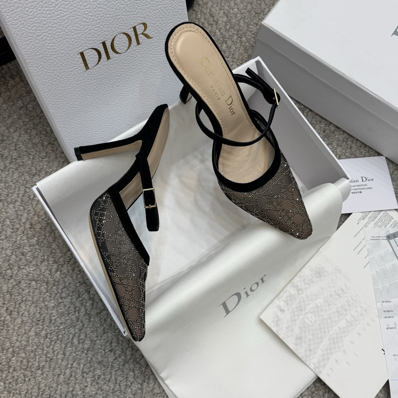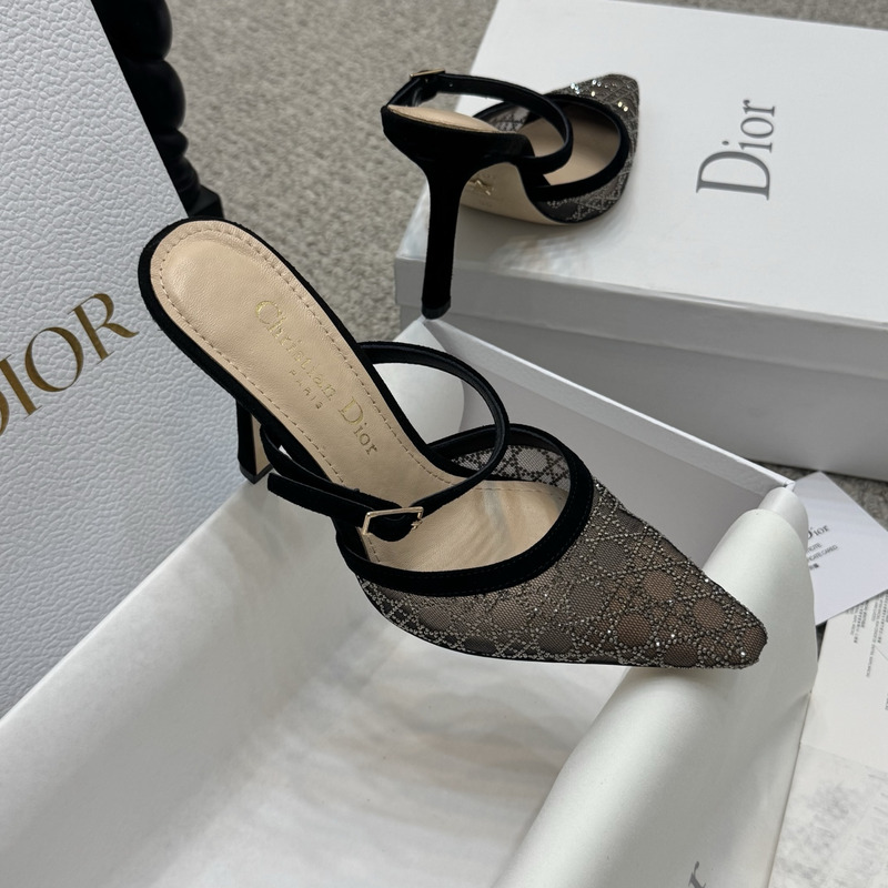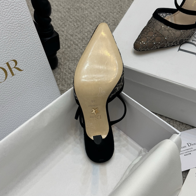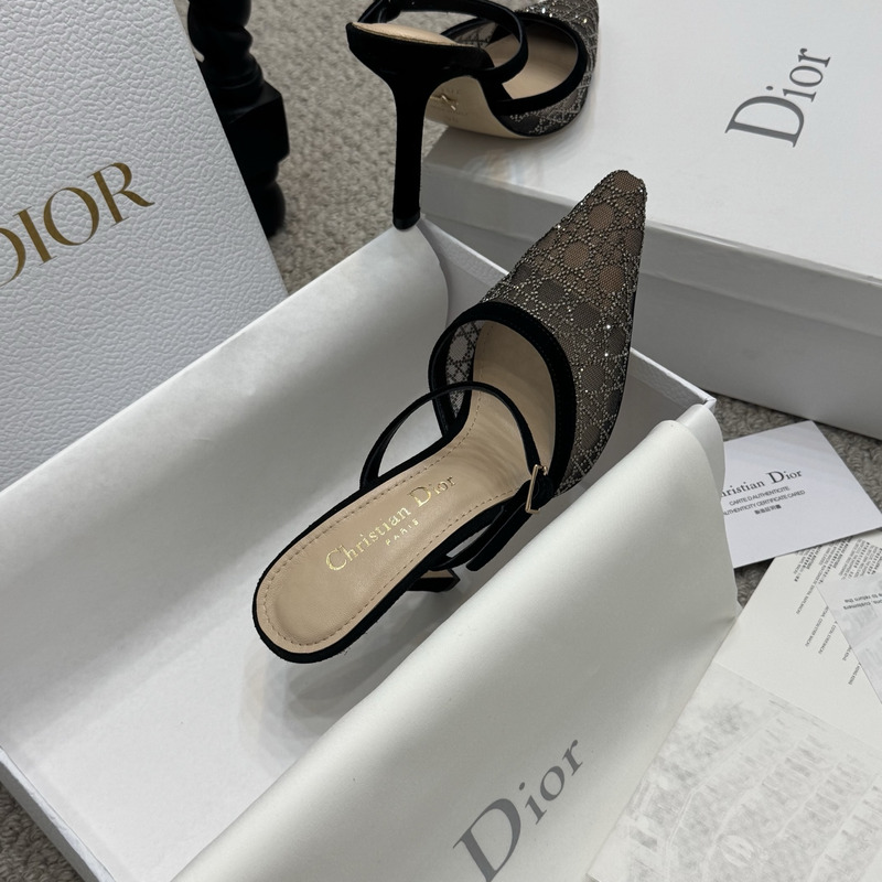 Dior Capture Heeled Black Mule Transparent Mesh With Silver-Tone Strass Cannage Motif