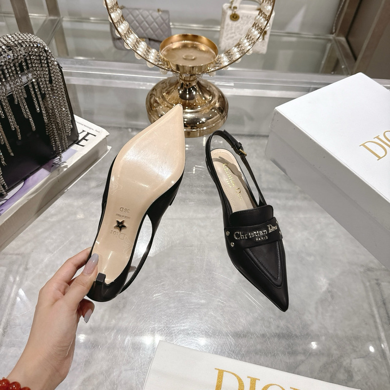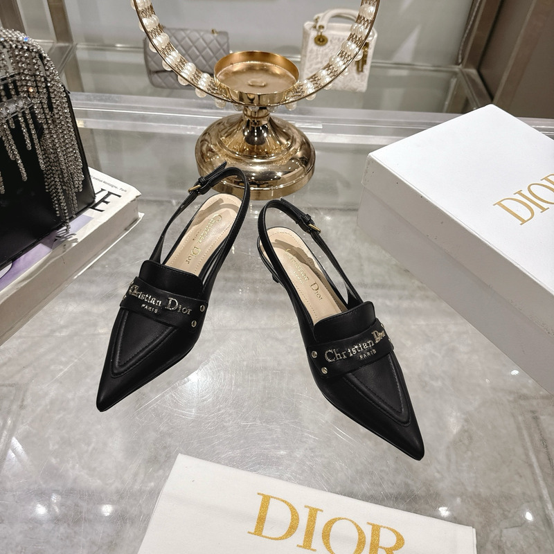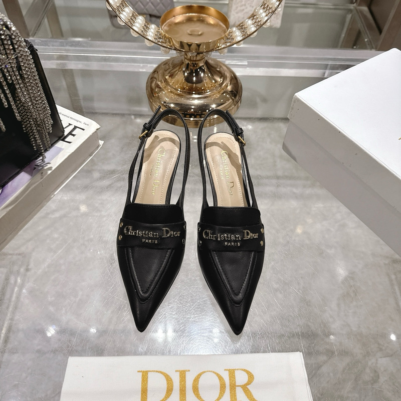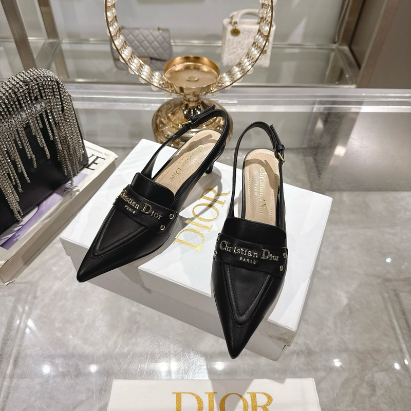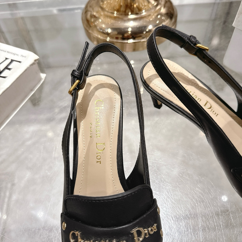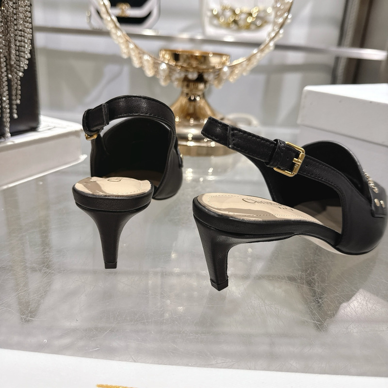 Dior J\'Adior Slingback Pump Heel In Black Calfskin with Gold-Tone Hardware