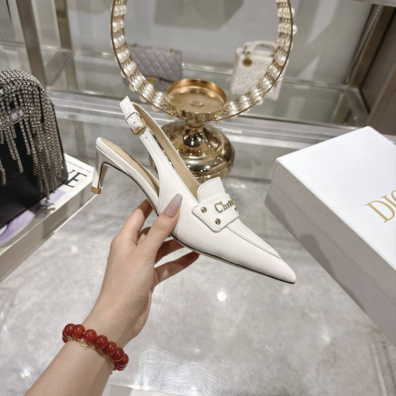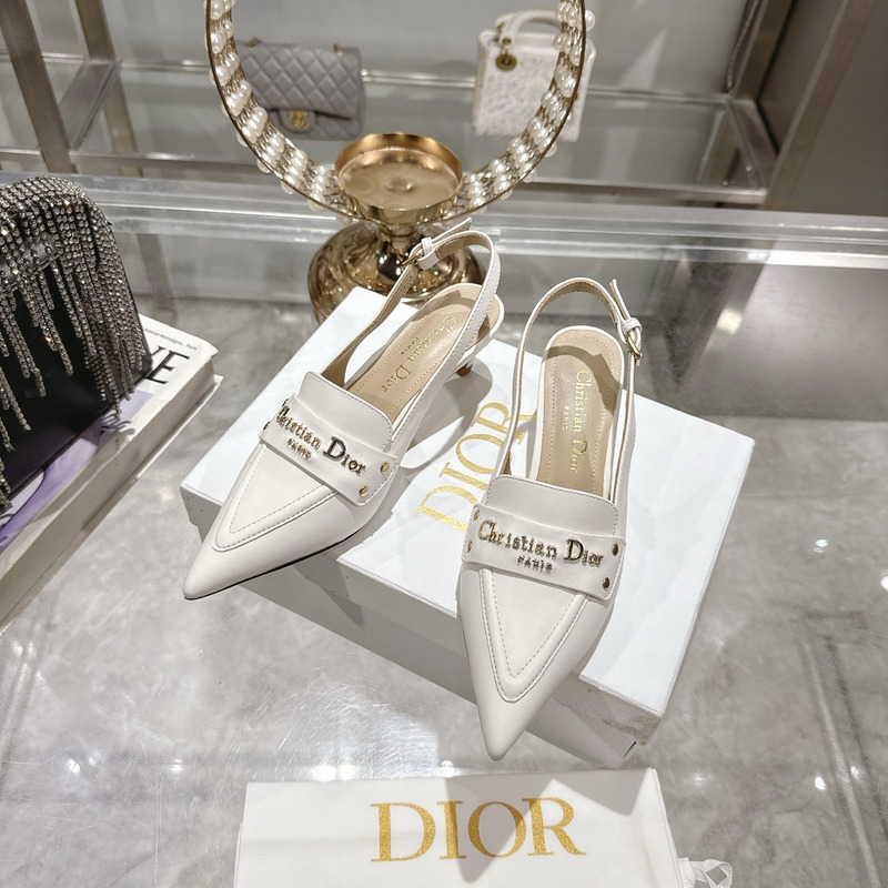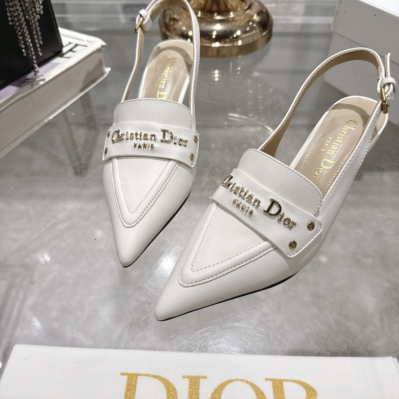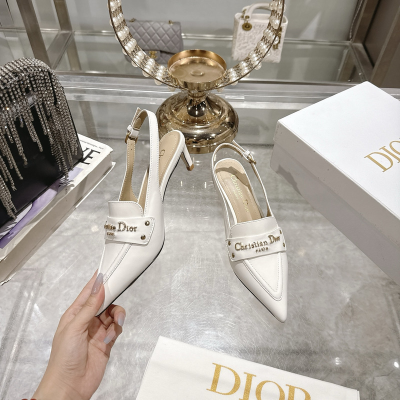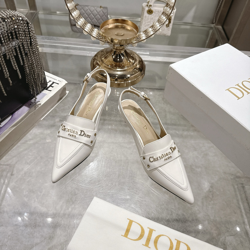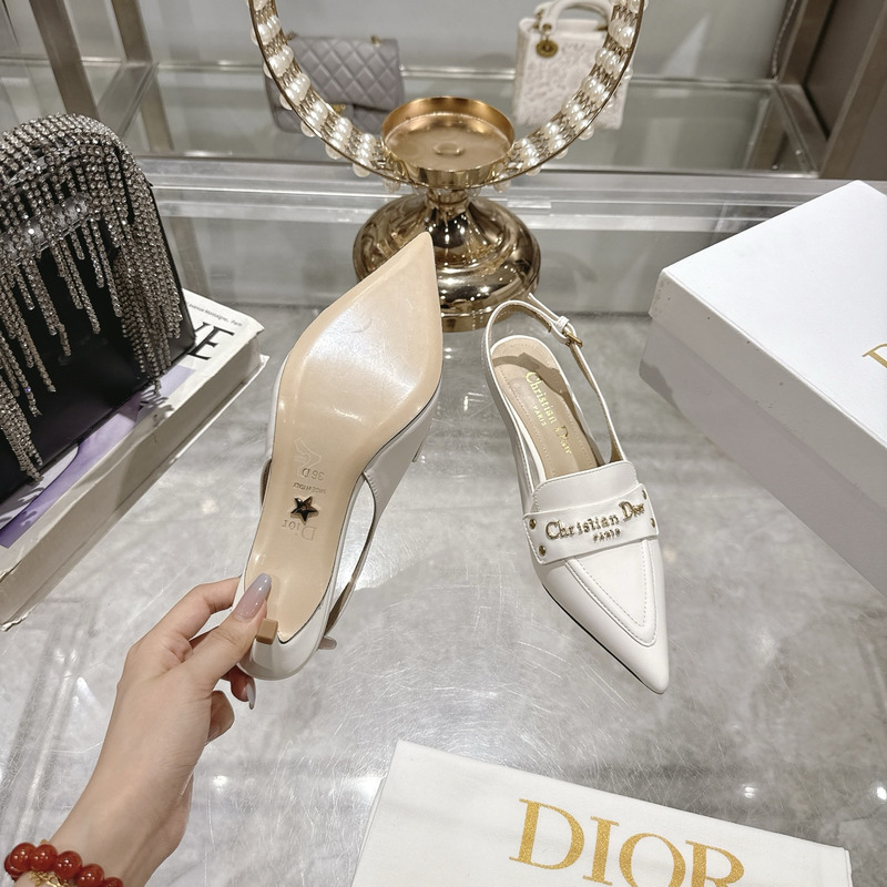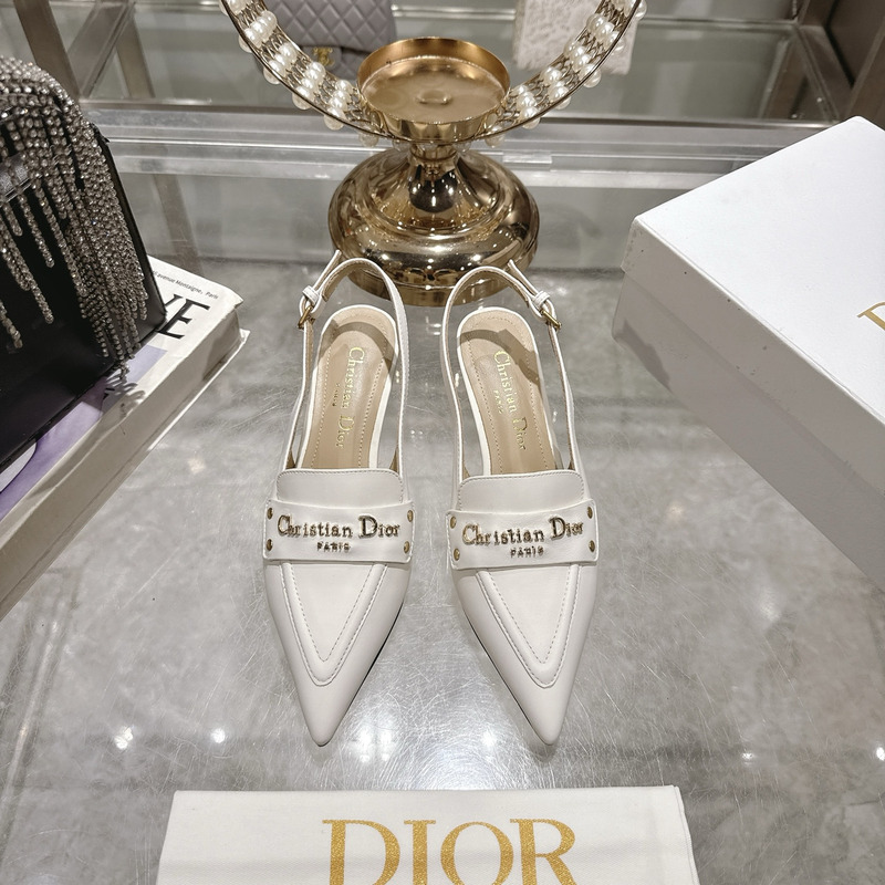 Dior J\'Adior Slingback Pump Heel In White Calfskin with Gold-Tone Hardware
