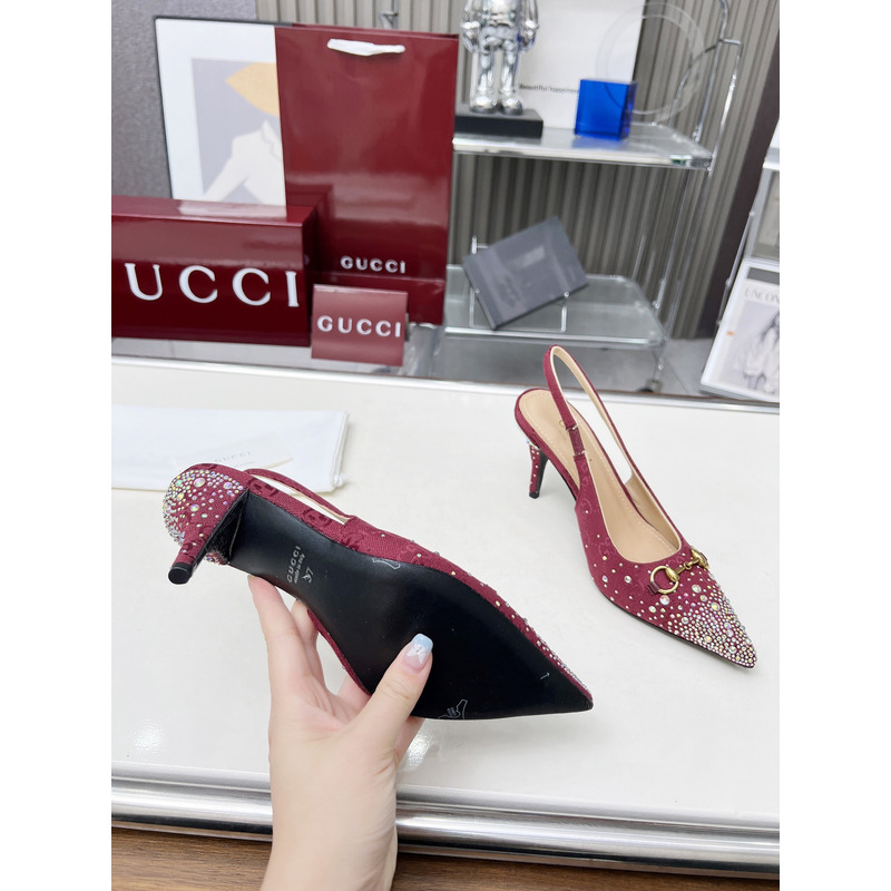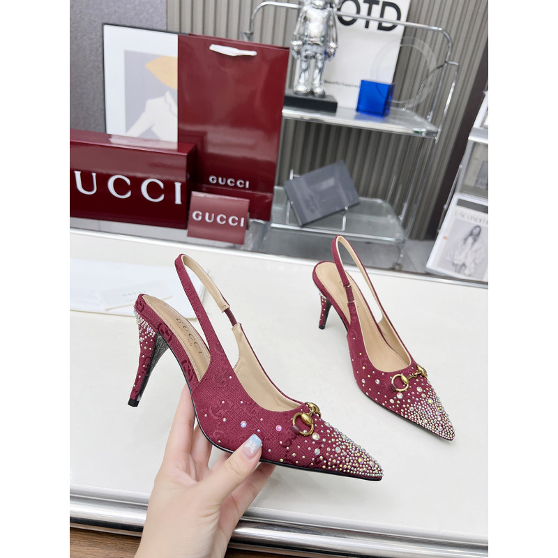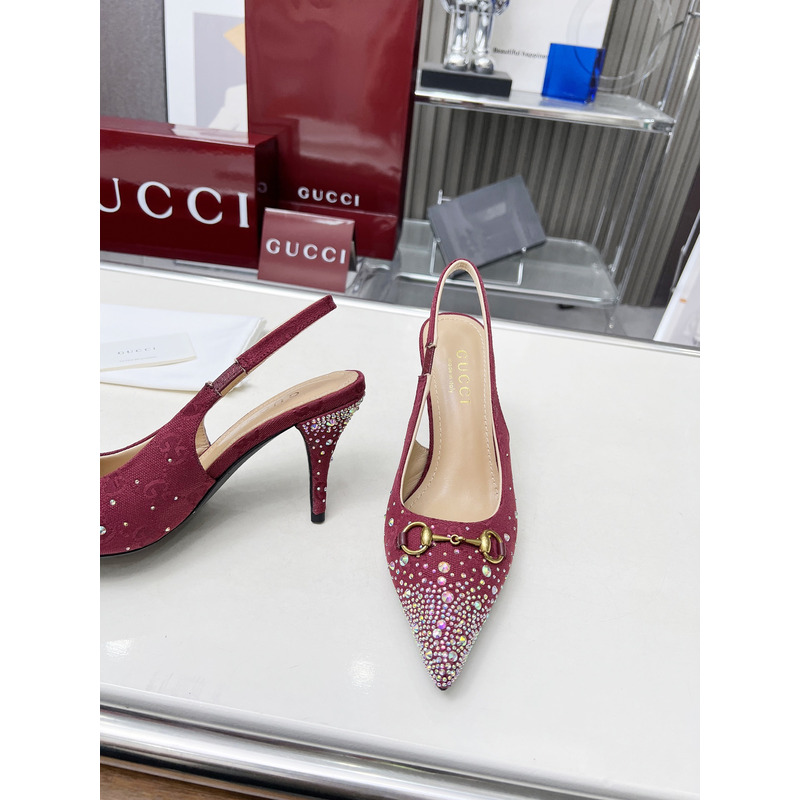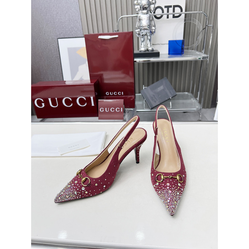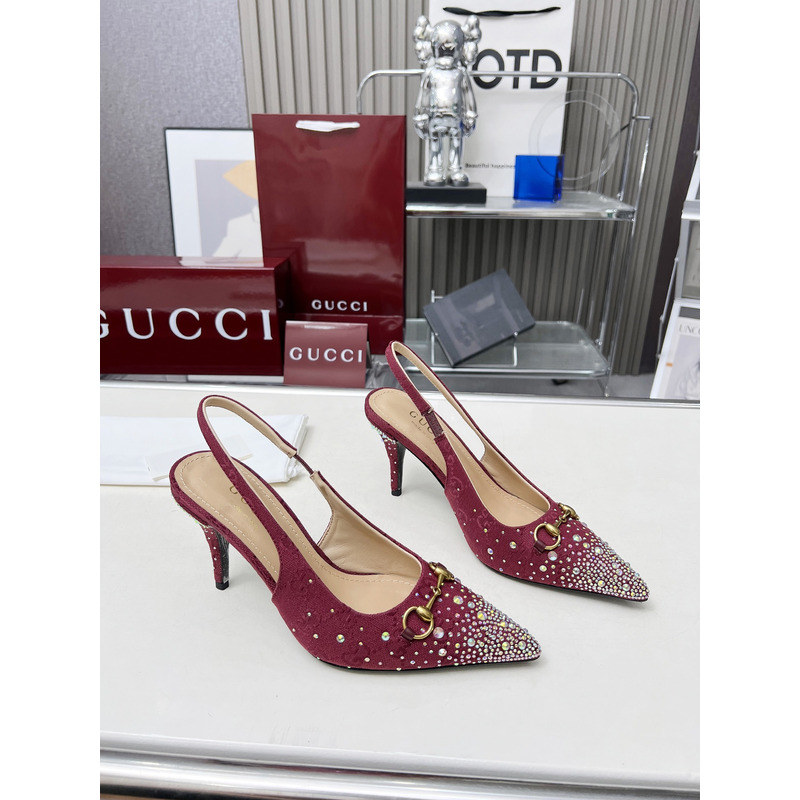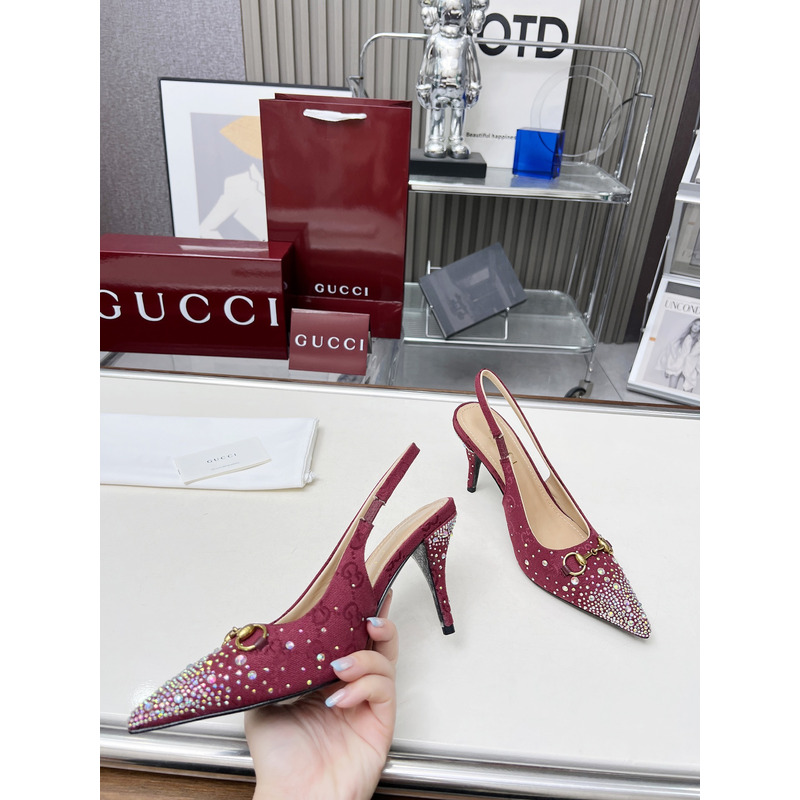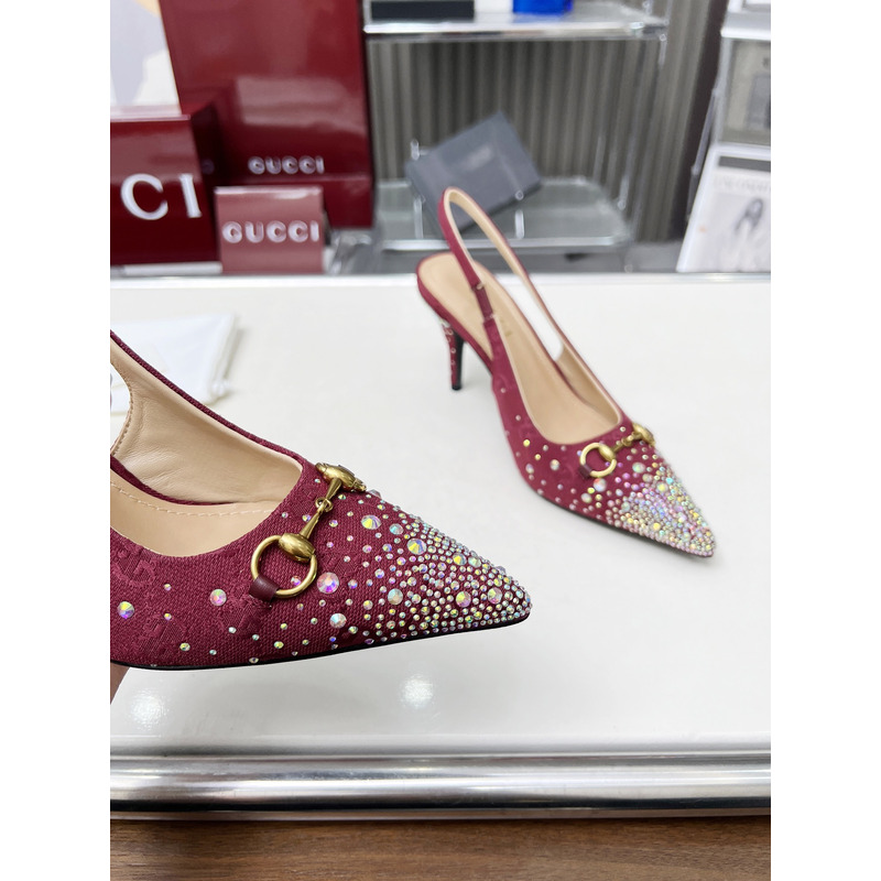 Gucci Slingback Pump With Crystal Horsebit Variation Rosso Ancora GG canvas