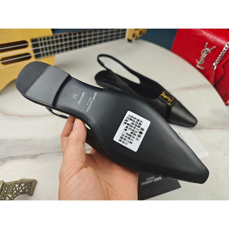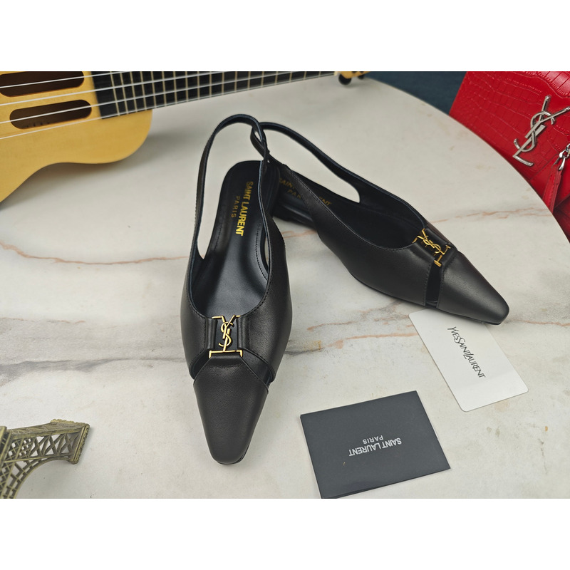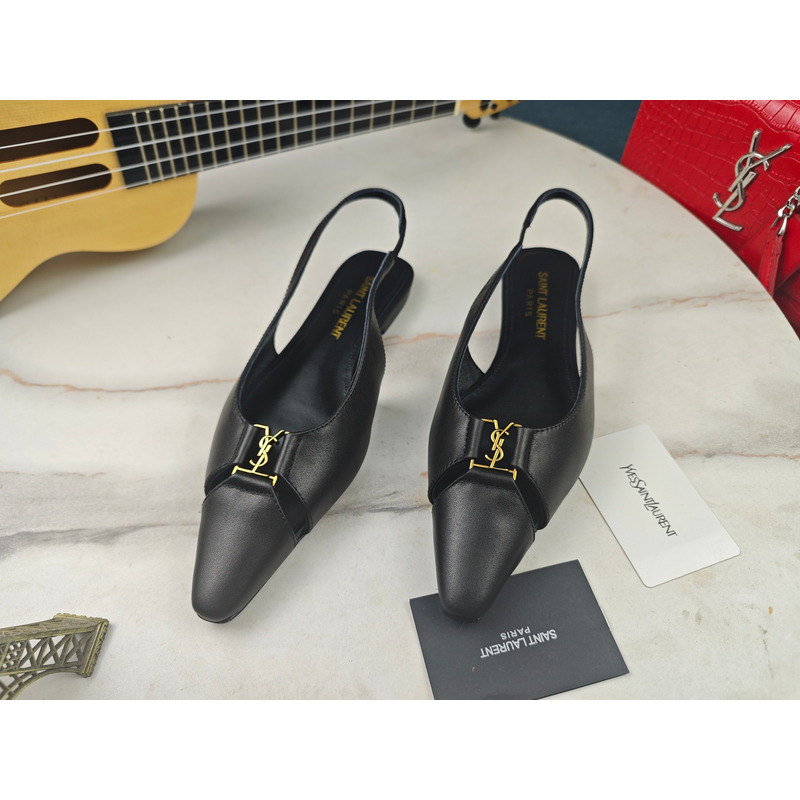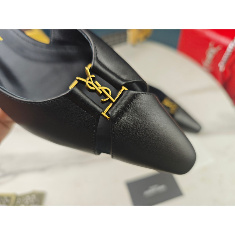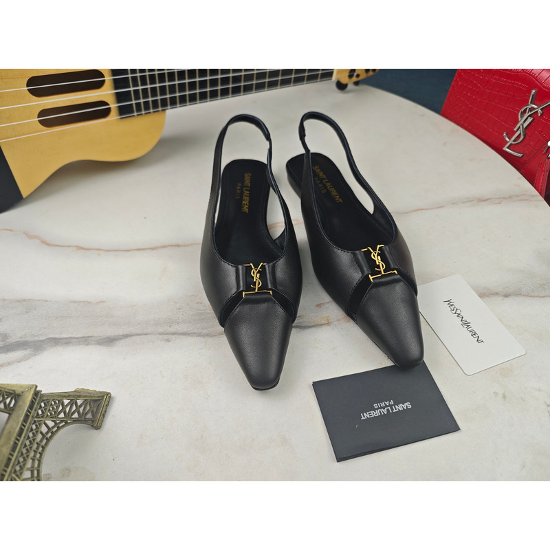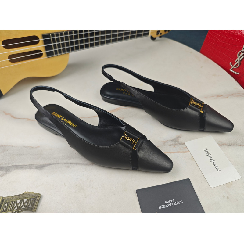 Saint Laurent Babylone Slingback Flats In Smooth Leather Black
