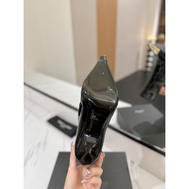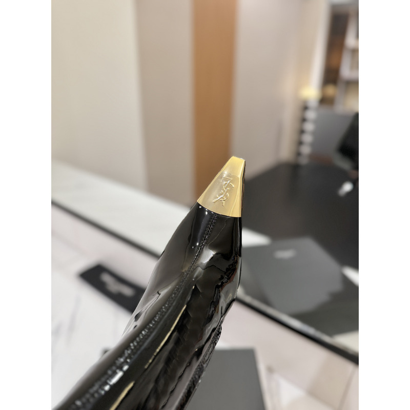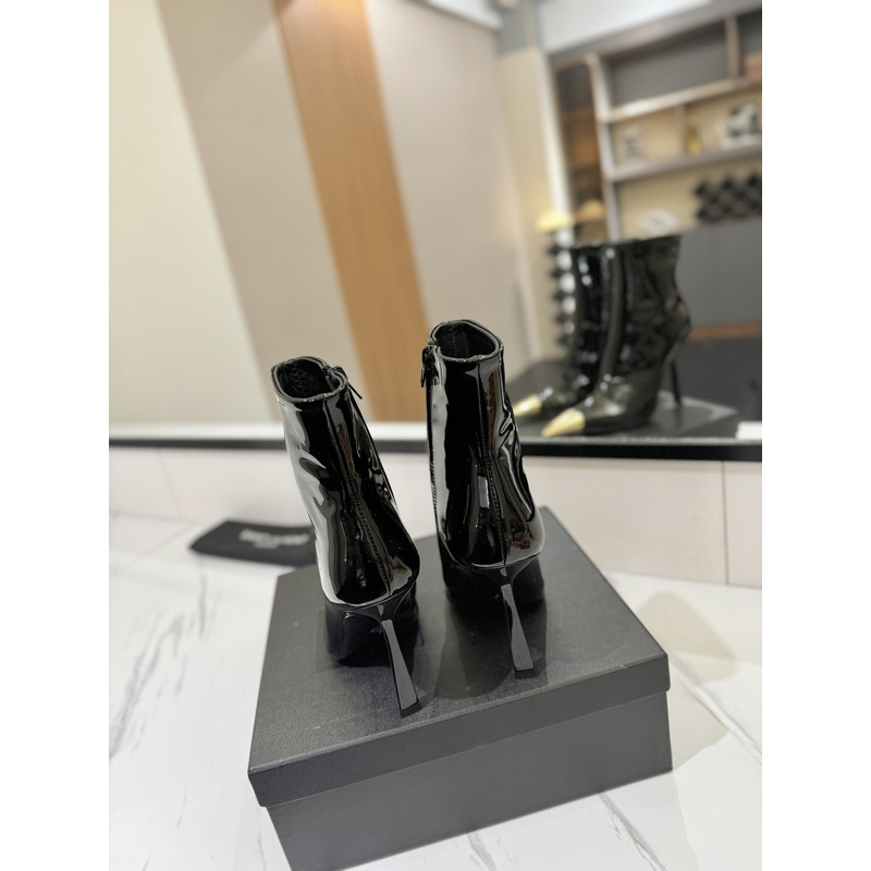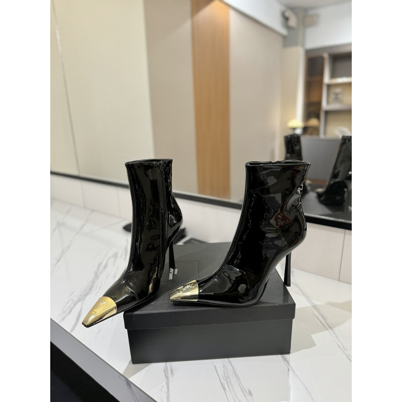 Saint Laurent Black Patent Leather Ankle Boots With Gold-Tone Toe Cap