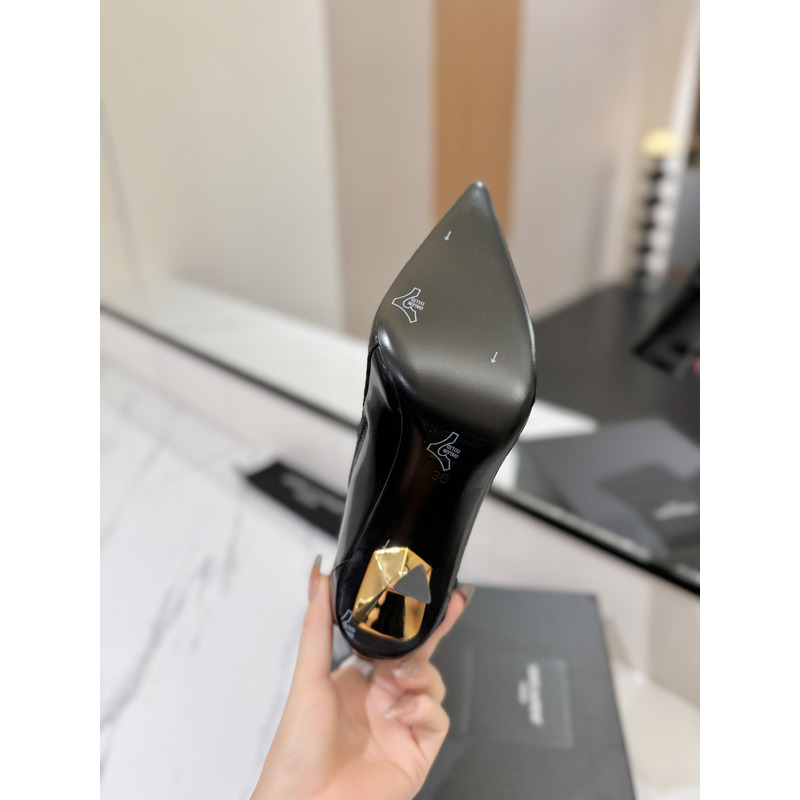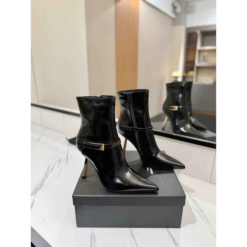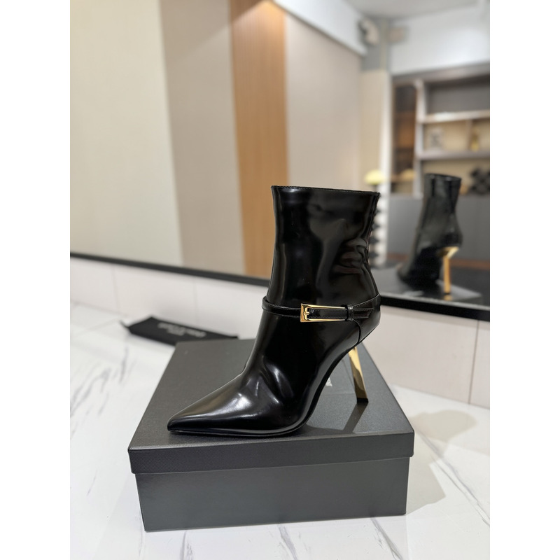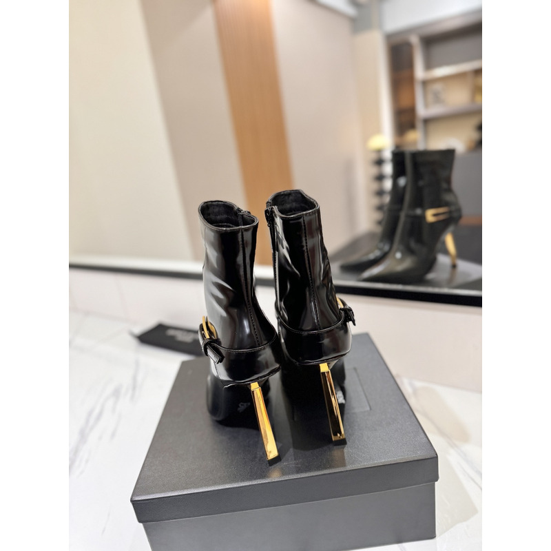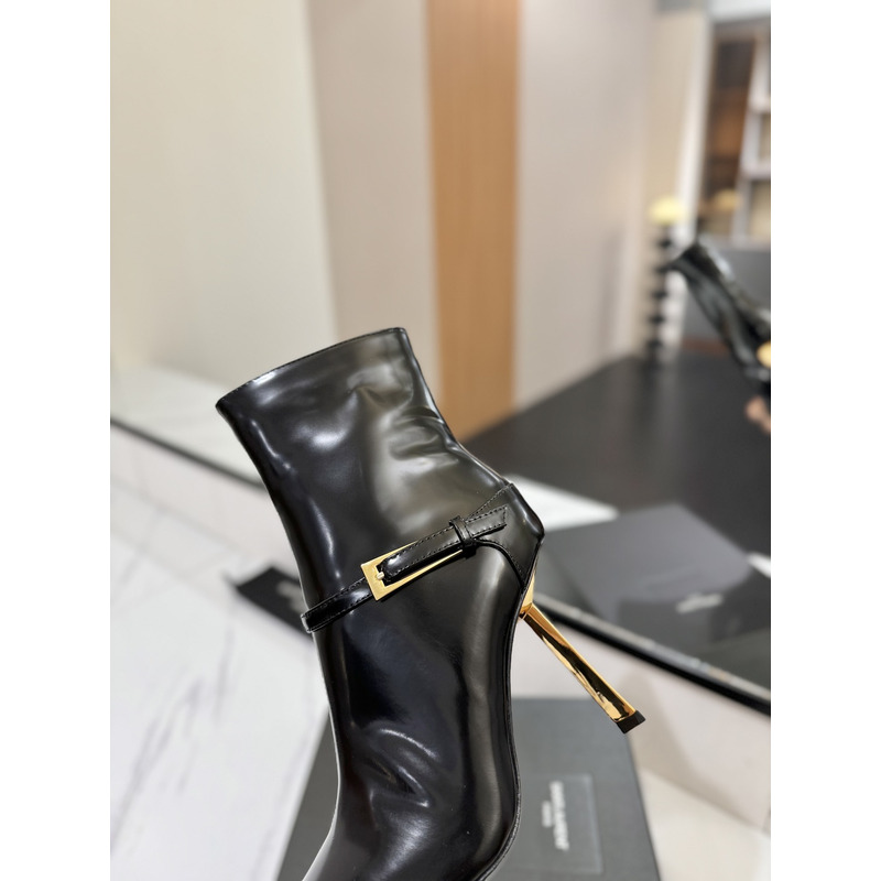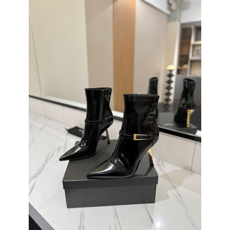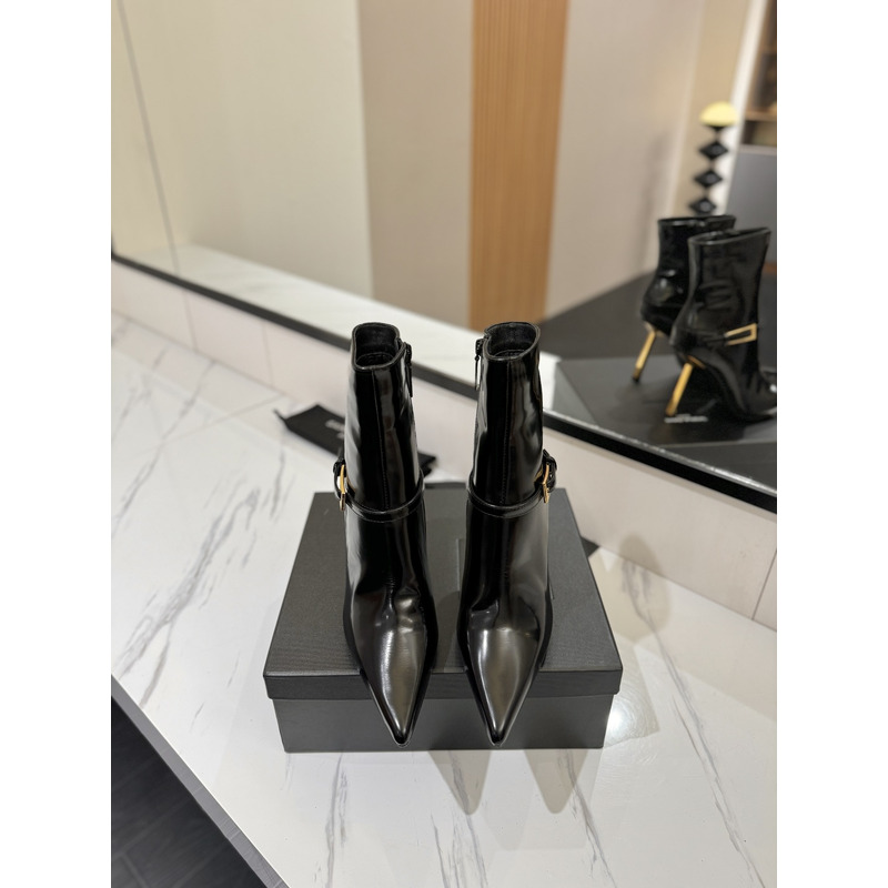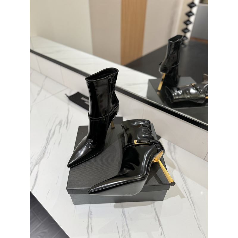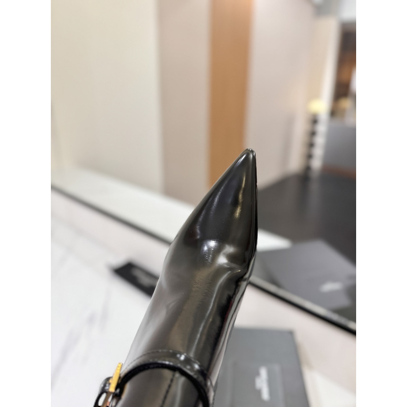 Saint Laurent Black Patent Leather Pointed-Toe Ankle Boots