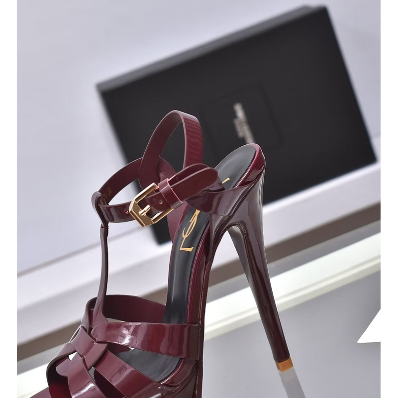 Saint Laurent Tribute Platform Sandals In Smooth Leather Burgundy