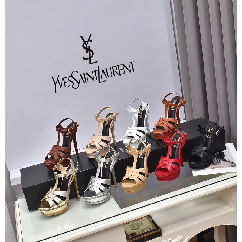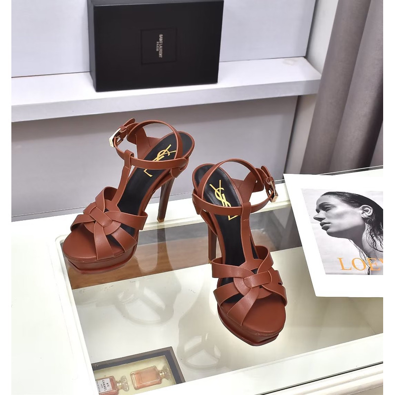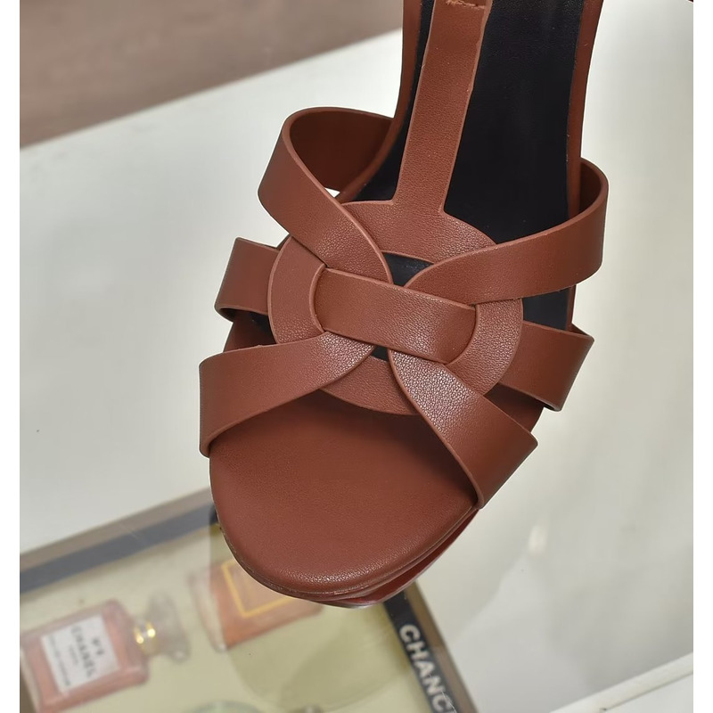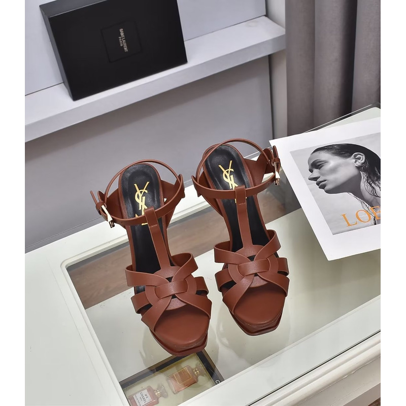 Saint Laurent Tribute Platform Sandals In Smooth Leather Dark Brown