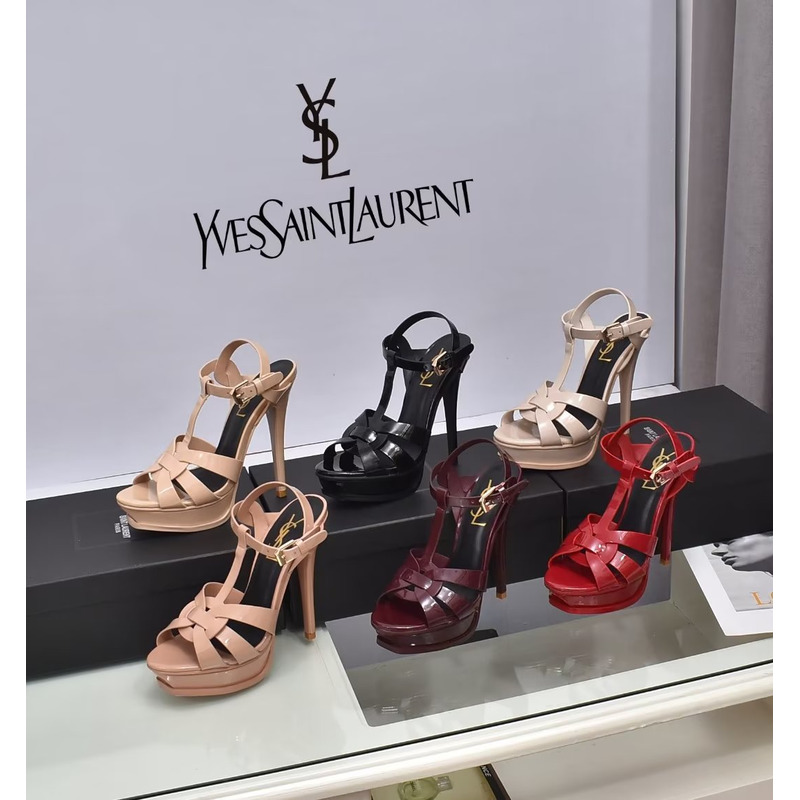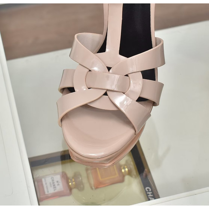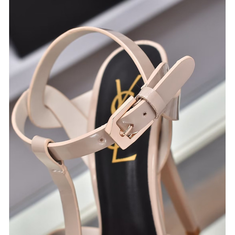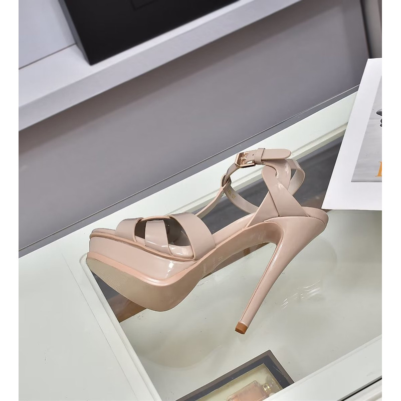 Saint Laurent Tribute Platform Sandals In Smooth Leather Light Beige