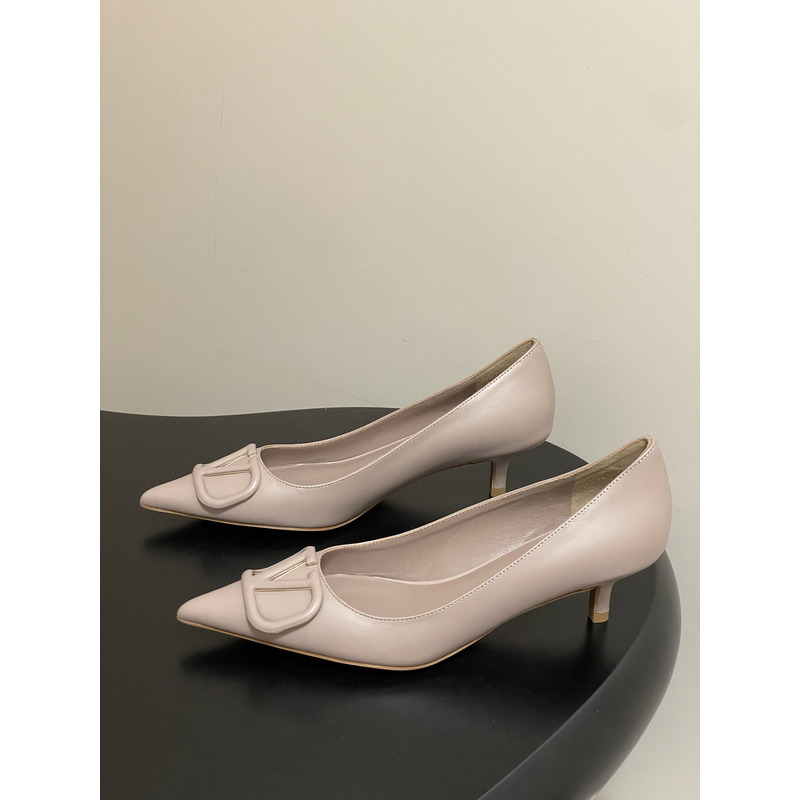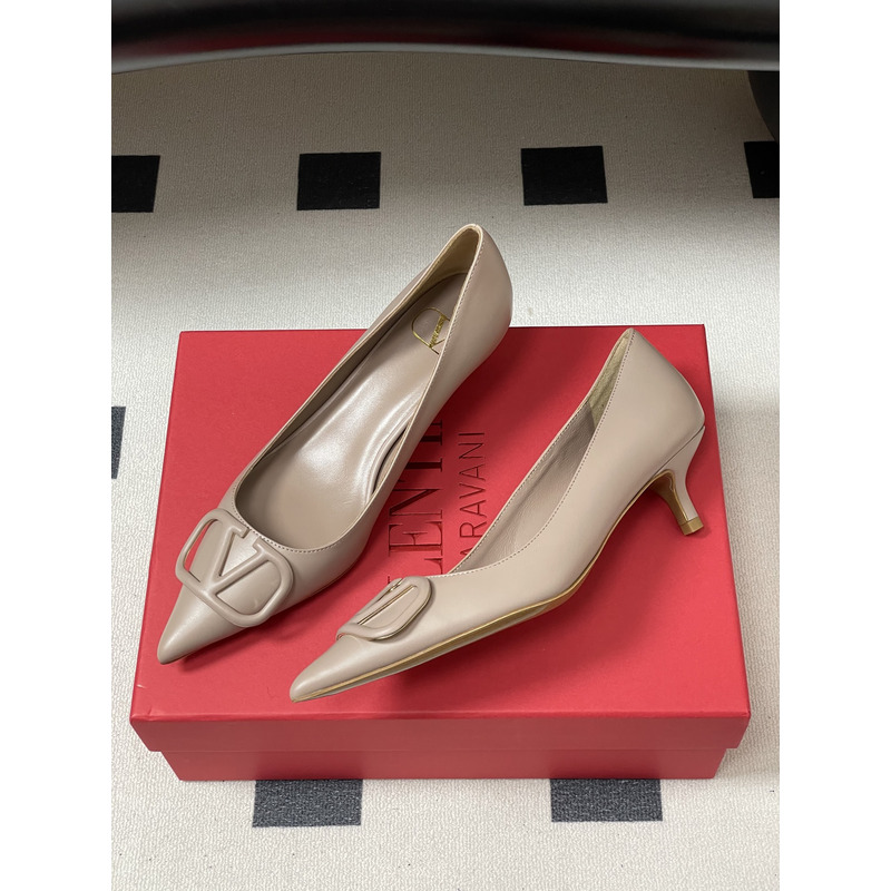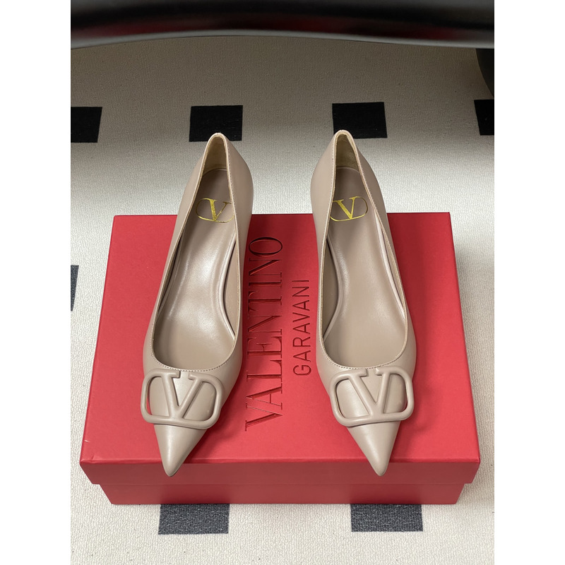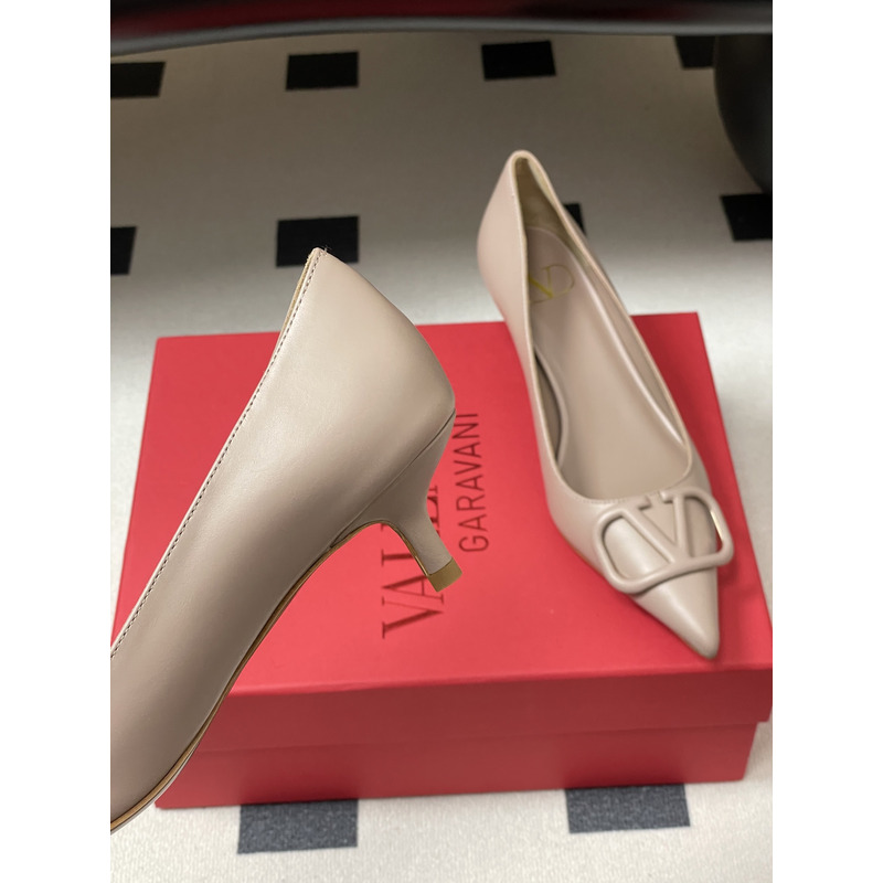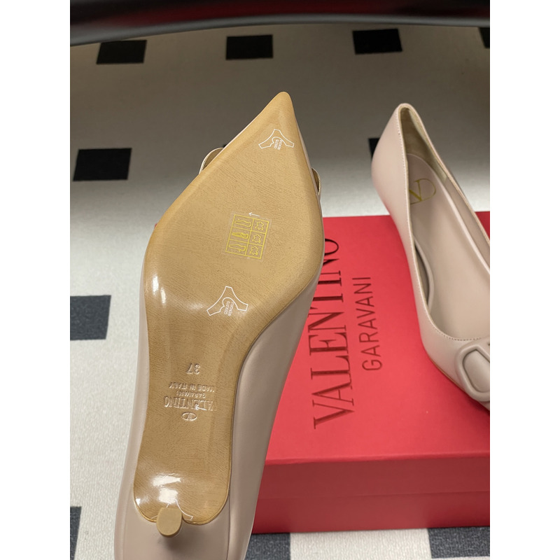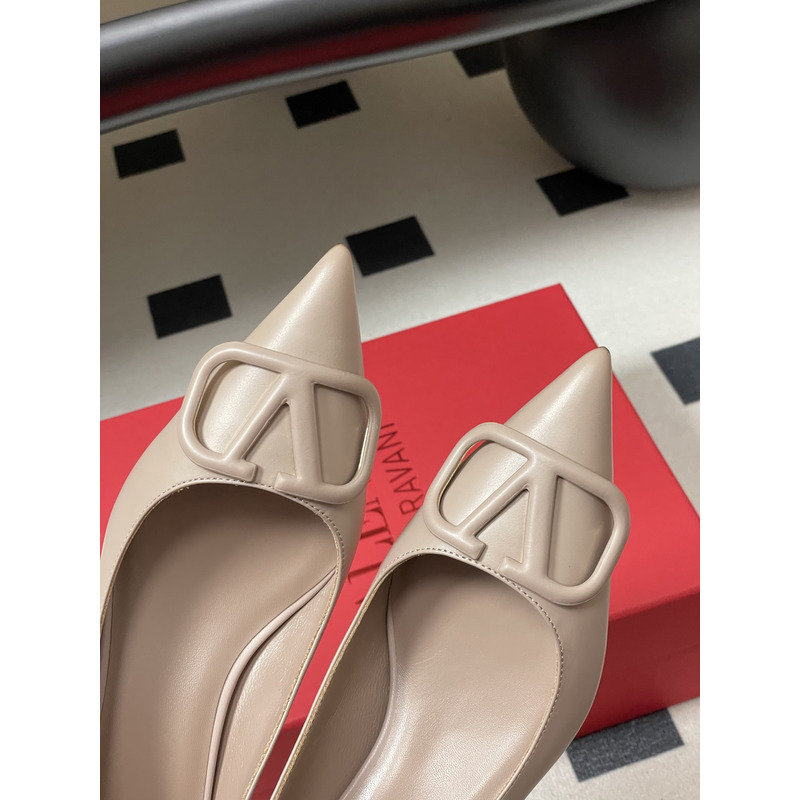 Valentino Garavani VLogo Leather Pointed-Toe Pumps In Light Nude Pink
