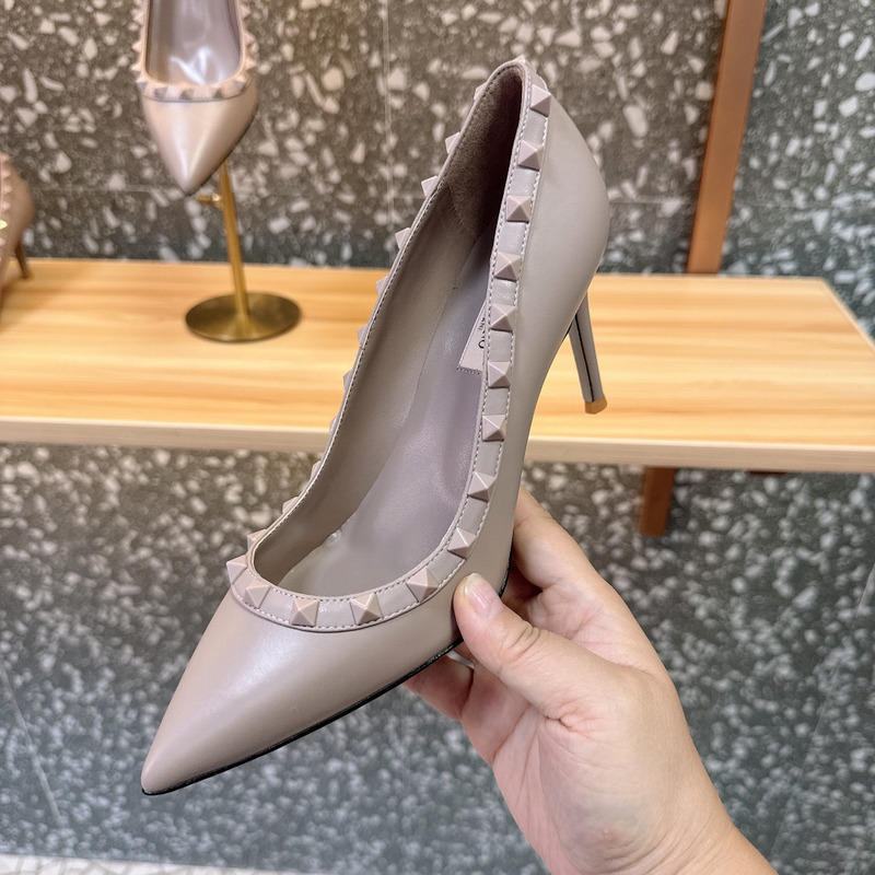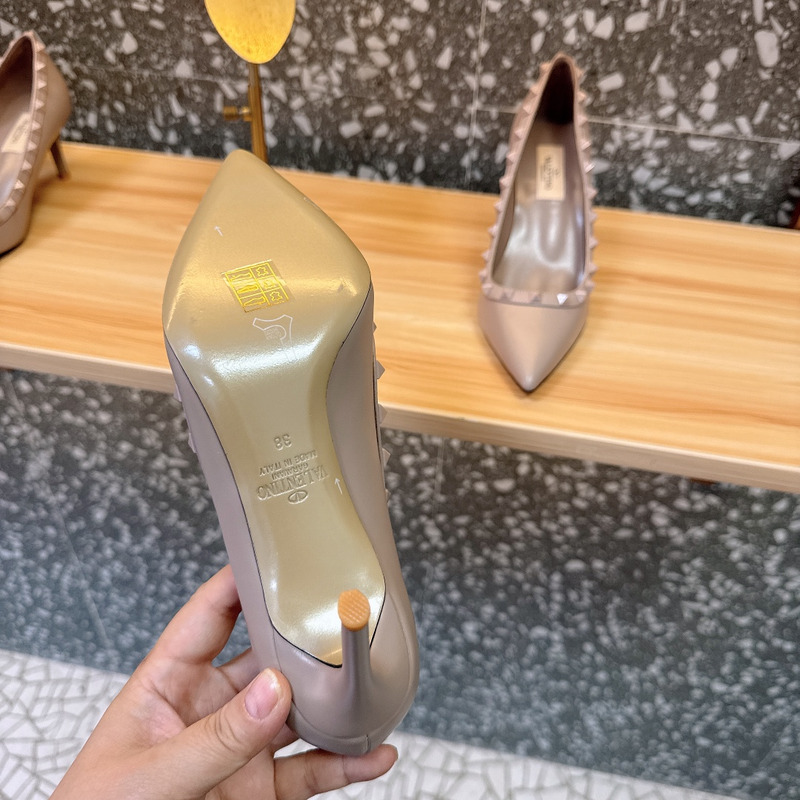 Valentino Rockstud Dusty Taupe Textured Leather Studded Heels