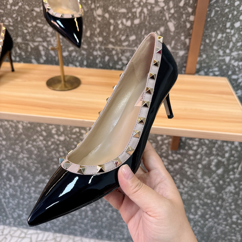 Valentino Rockstud Patent Leather Studded Heels - Black
