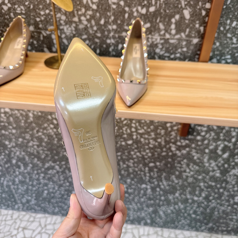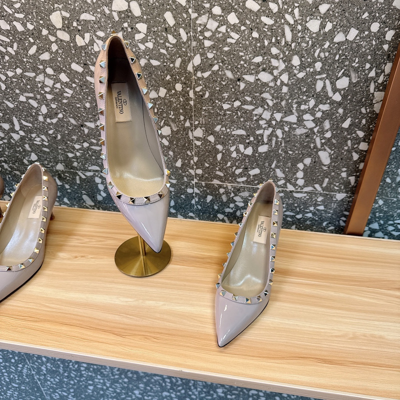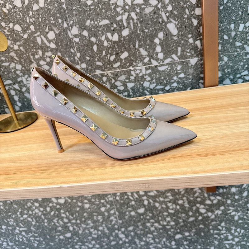 Valentino Rockstud Patent Leather Studded Heels In Dusty Taupe