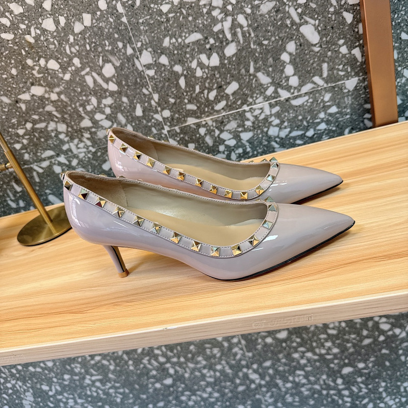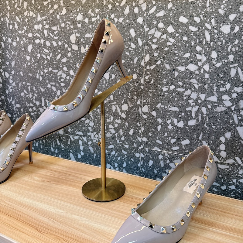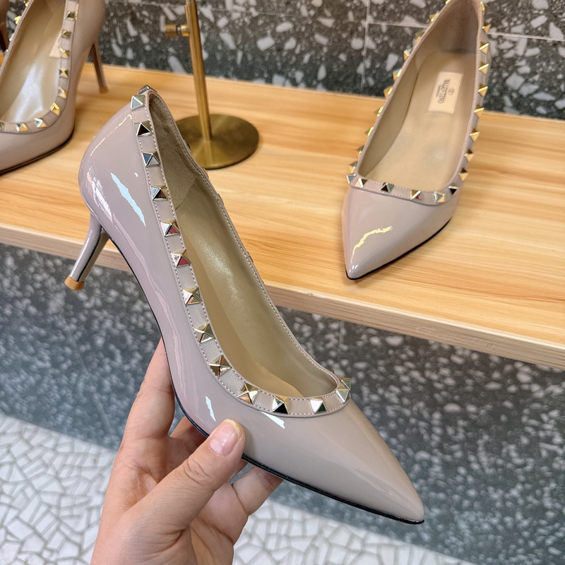 Valentino Rockstud Patent Leather Studded Heels In Dusty Taupe