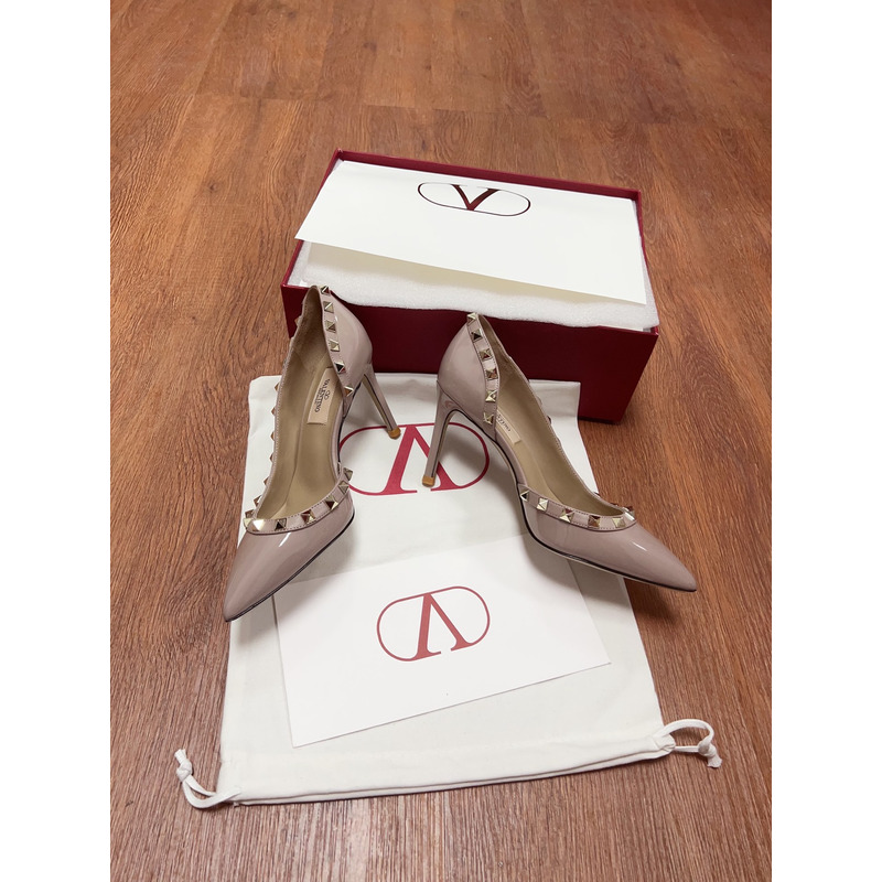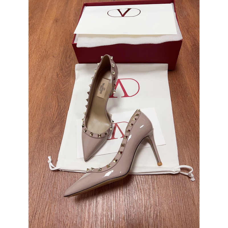 Valentino Rockstud Patent Leather Studded Heels In Dusty Taupe