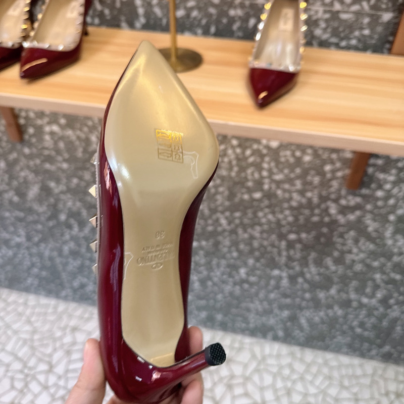 Valentino Rockstud Patent Leather Studded Heels In Red