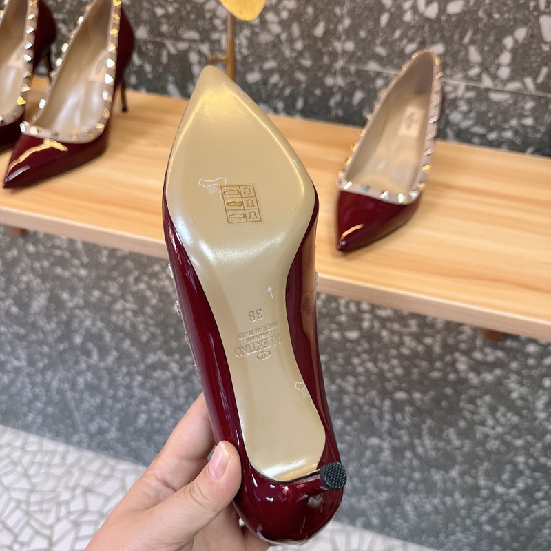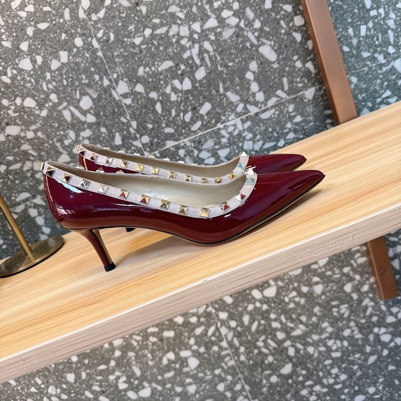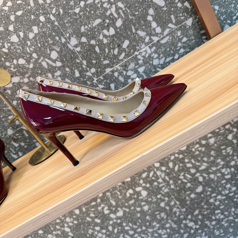 Valentino Rockstud Patent Leather Studded Heels In Red