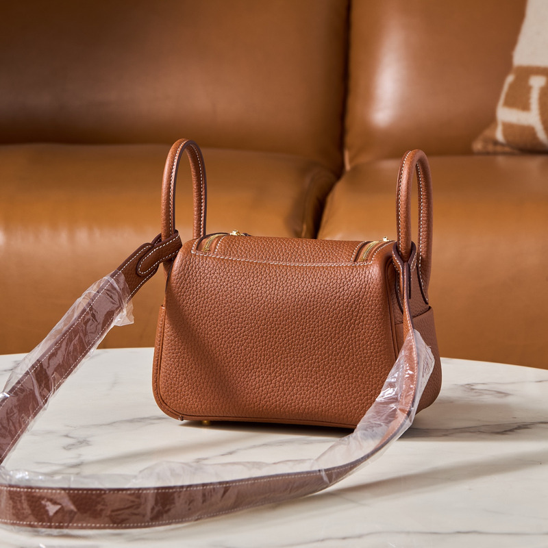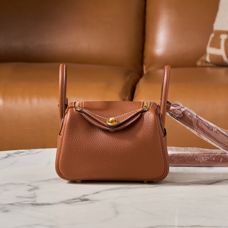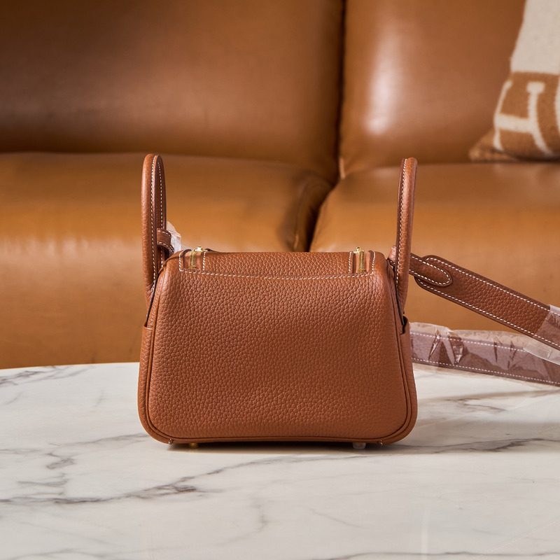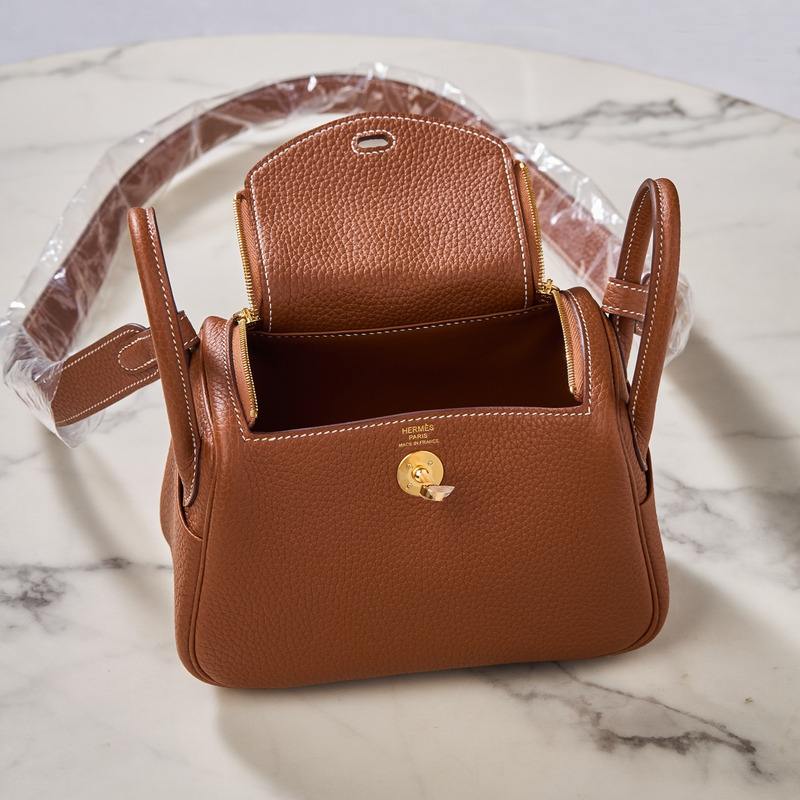 Hermès Lindy Mini Taurillon Clémence With Gold Hardware In Brown