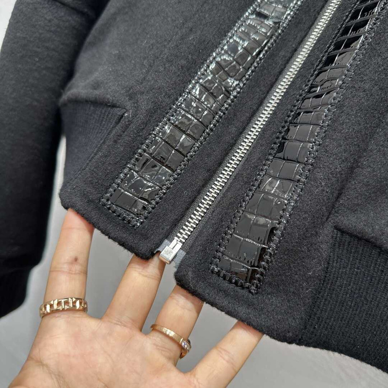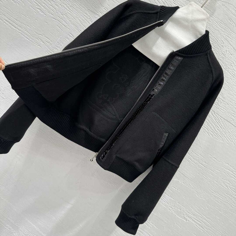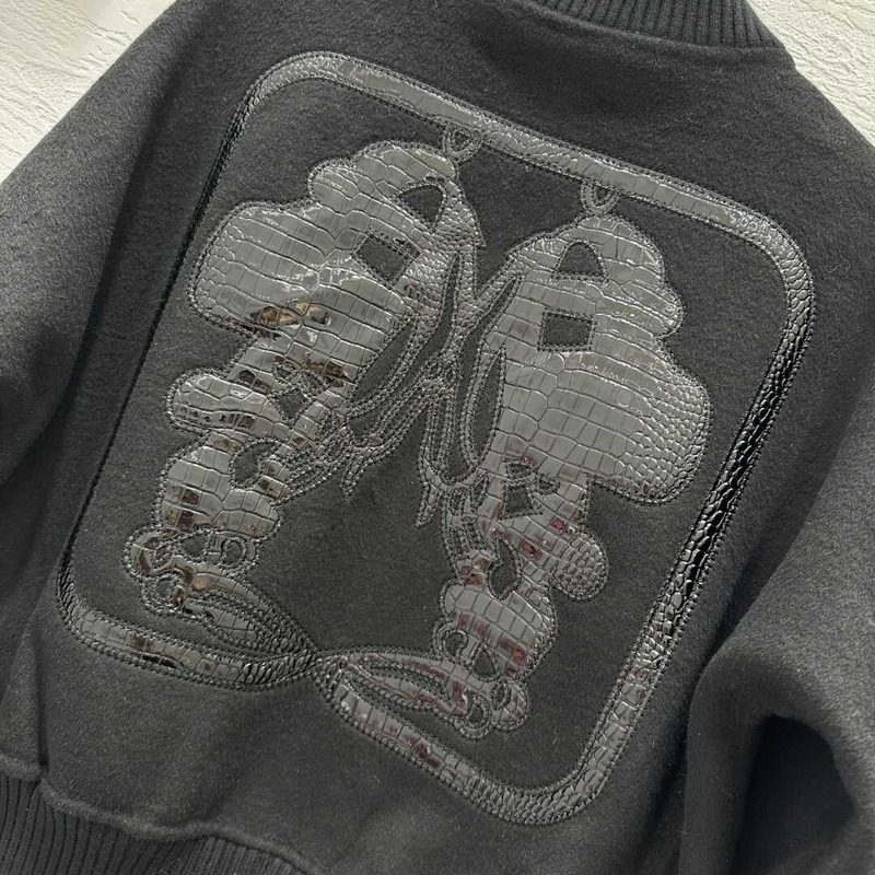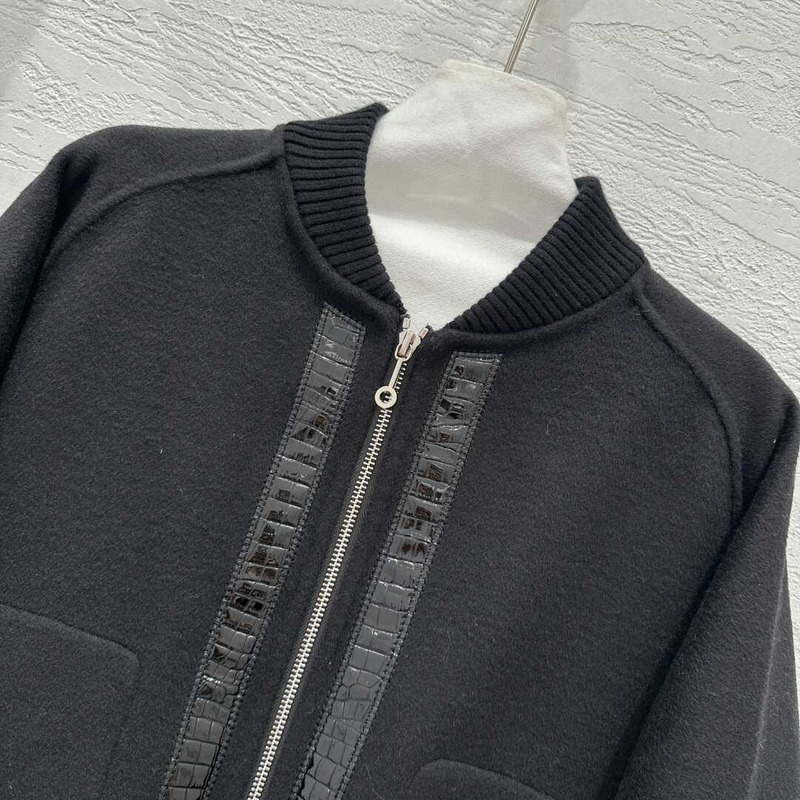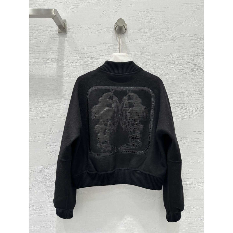 Hermes Black Bomber Jacket with Embroidered Back Design